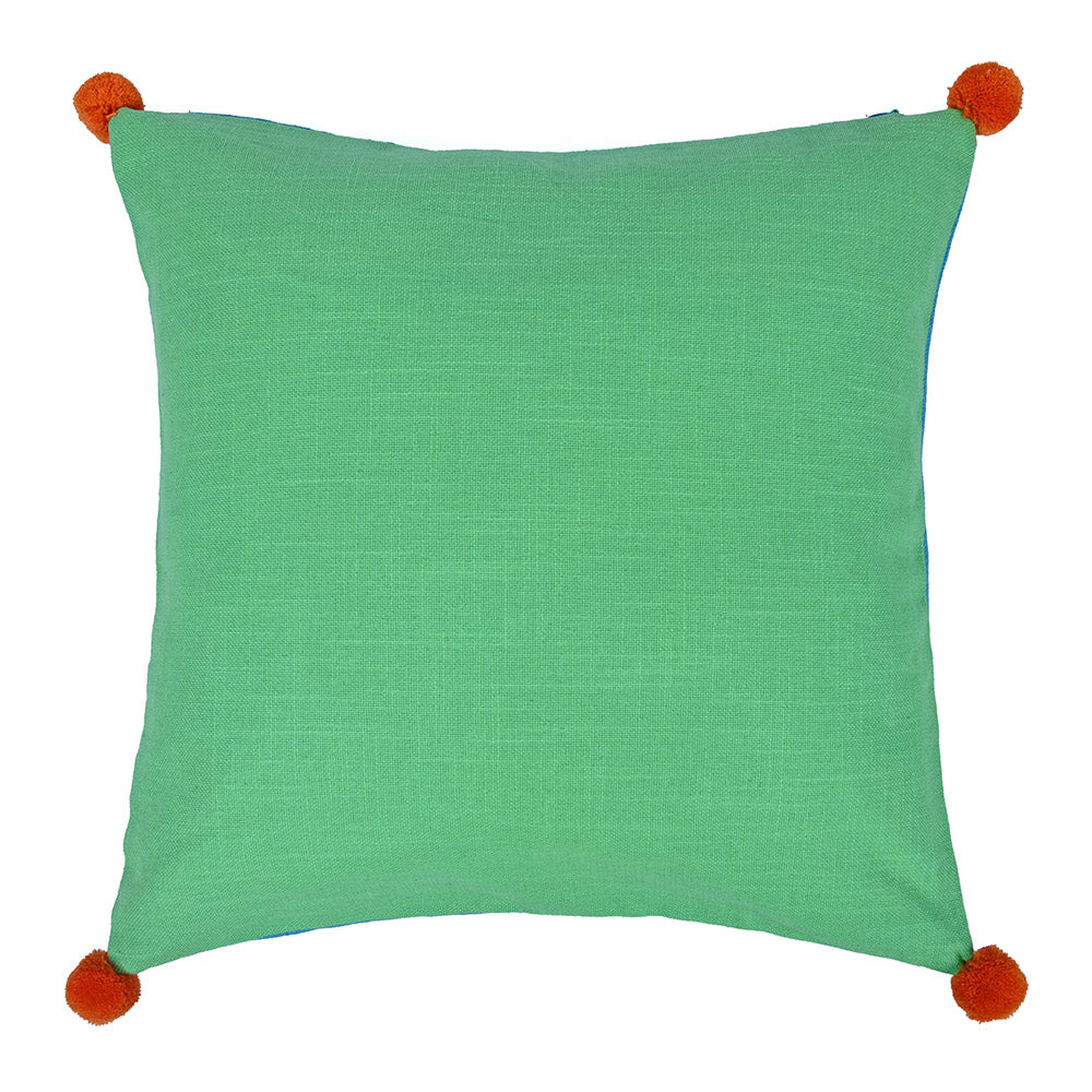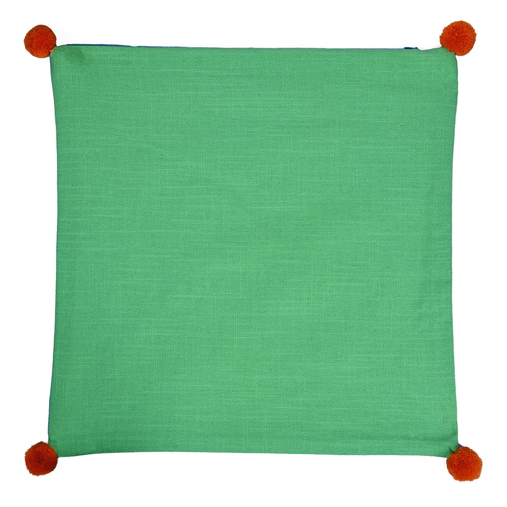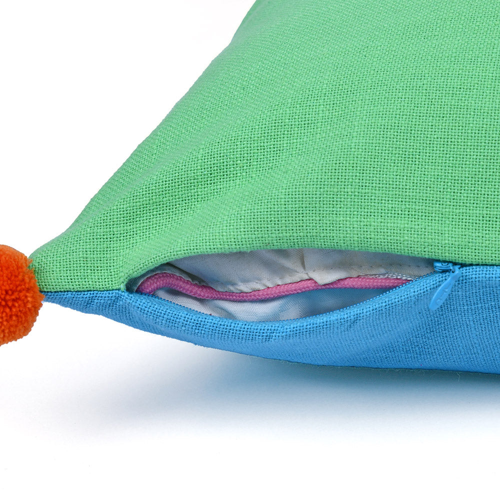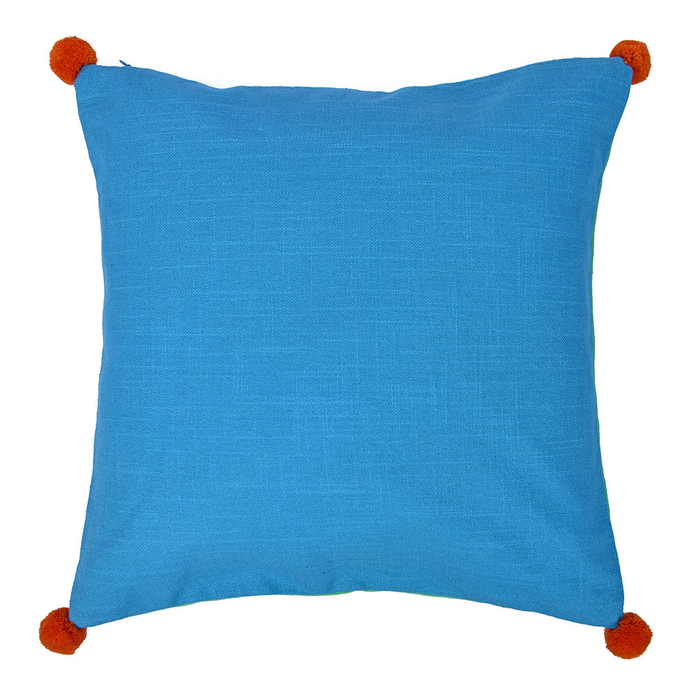 Solid Cotton 16' x 16' Two Sided Pom Pom Cushion Cover (Blue & Green)
