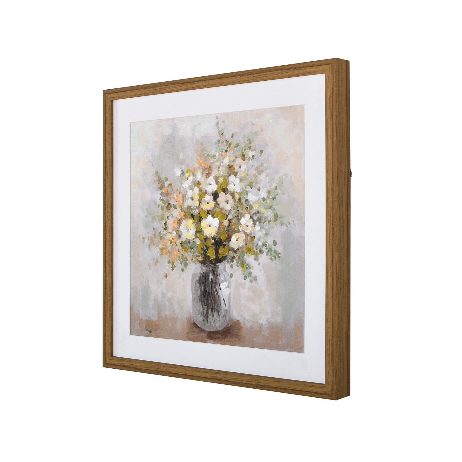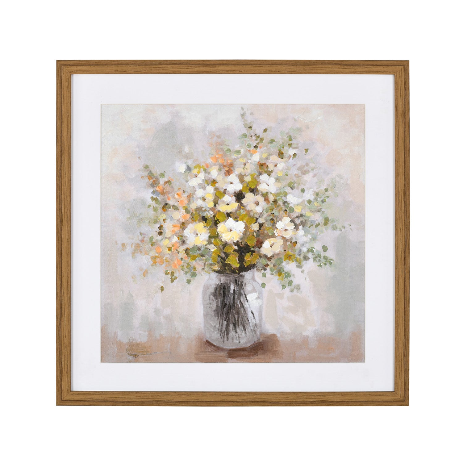 Still Life Flower Pot Canvas Wall Painting (Beige & White)