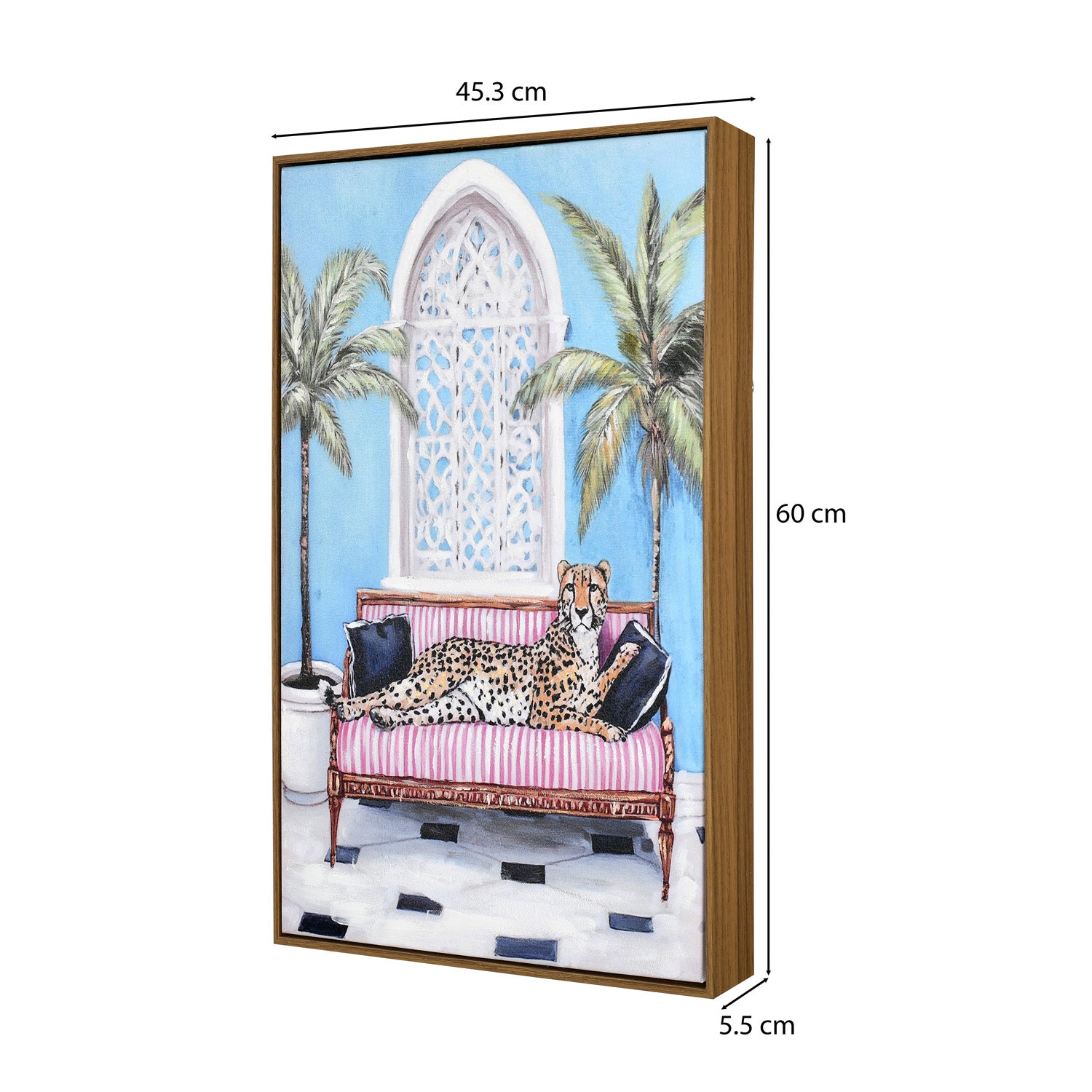 Bring charm to your living space with this hand-painted Nilkamal Homes Painting. Featuring a majestic tiger sitting on a cosy sofa, this artwork adds a bold and playful character to any room. Crafted with a sturdy canvas, durable wood stretcher, and a resilient PS frame, the painting ensures lasting elegance and structure. Its easy-to-mount design allows for effortless display in your living room, bedroom, or hallway. A perfect fusion of art and sentiment, this piece also makes a thoughtful gift for those who value refined décor.