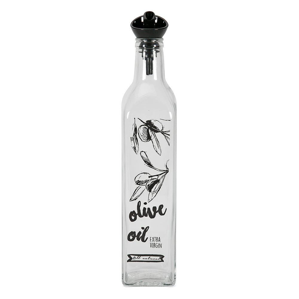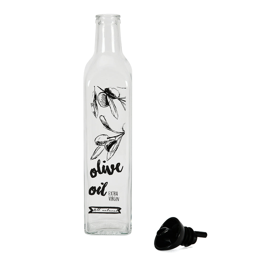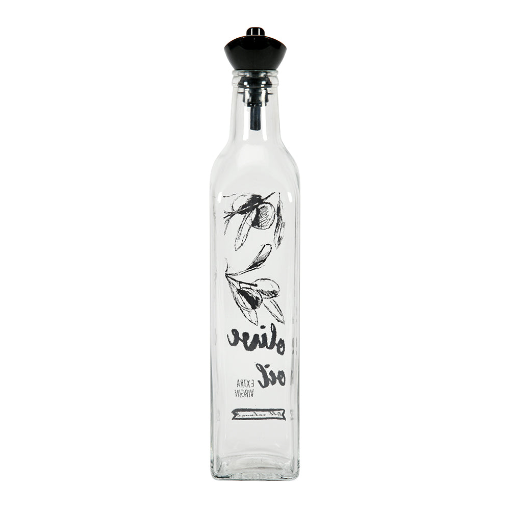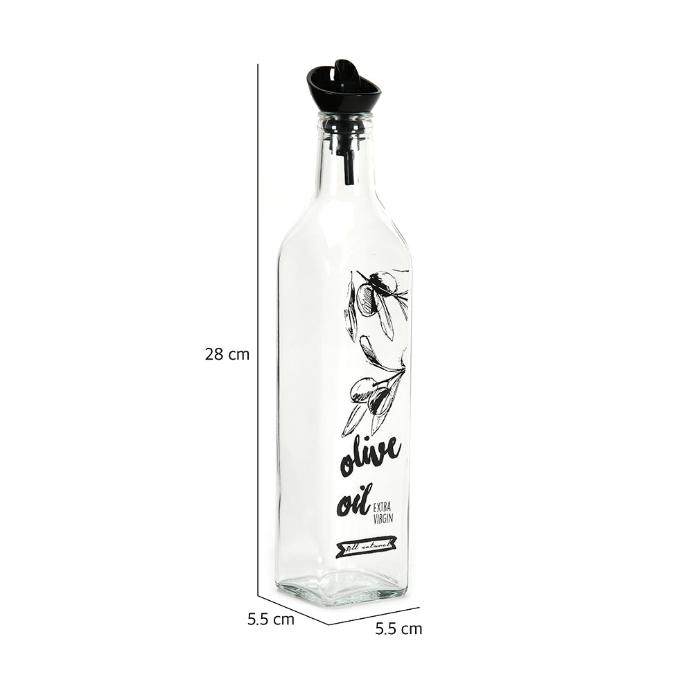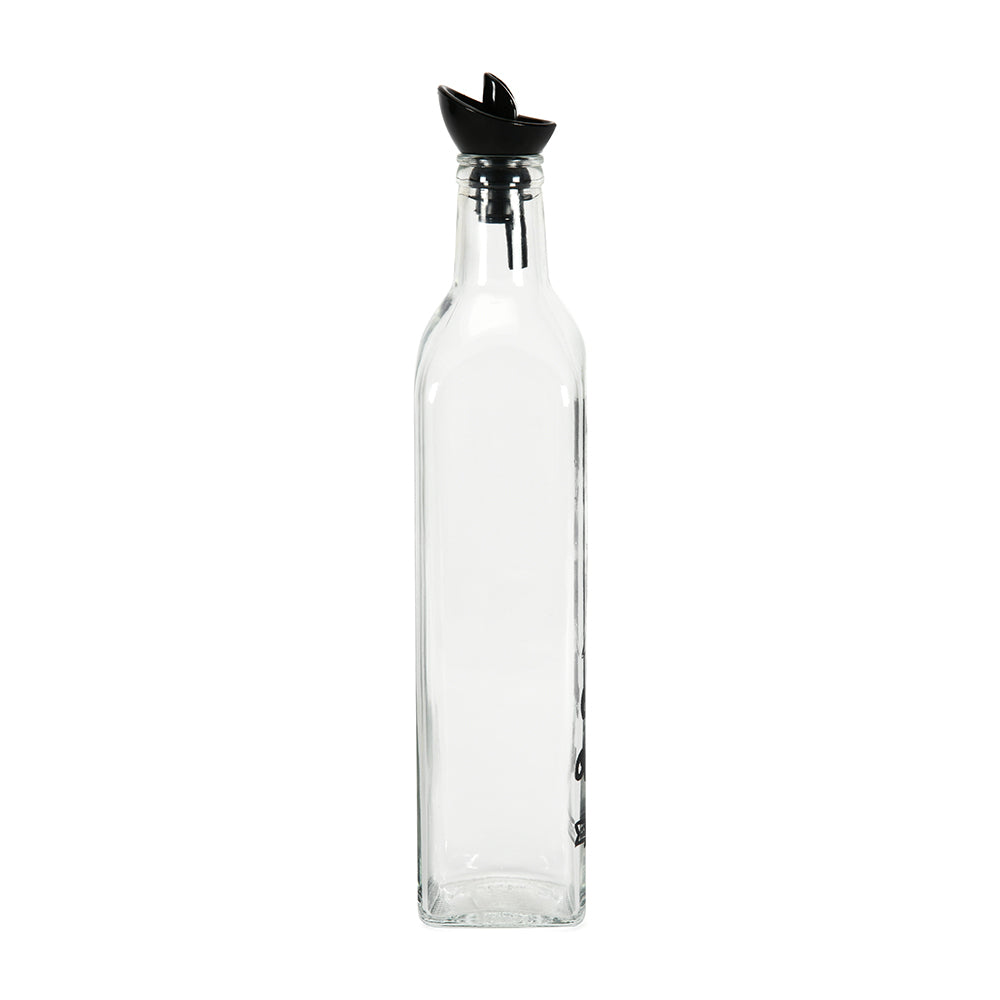 Transparent 500 ml Glass Oil Dispenser Bottle (Transparent & Black)