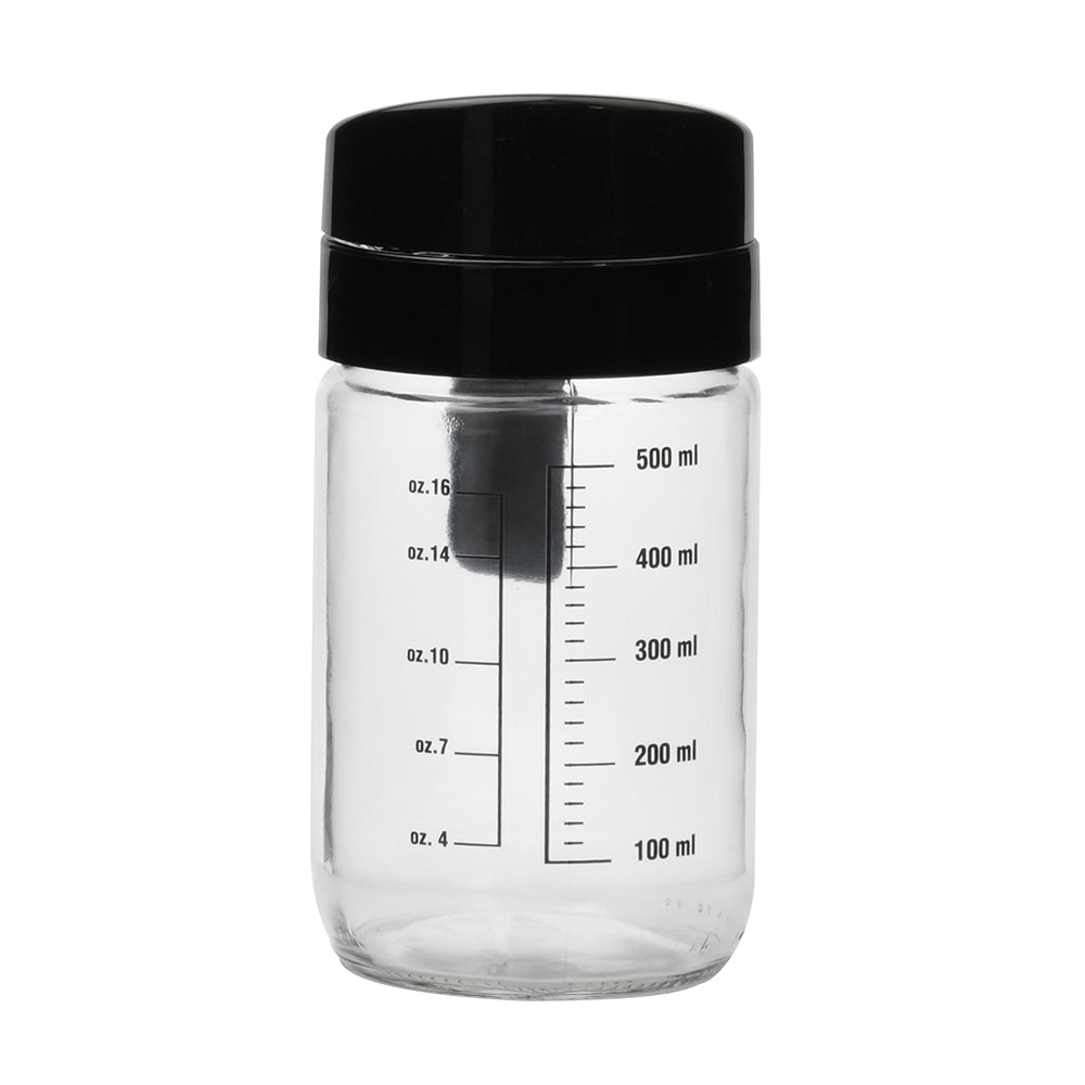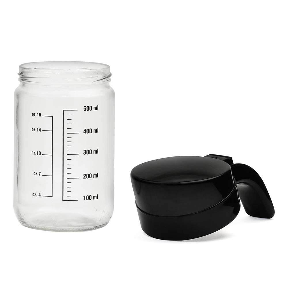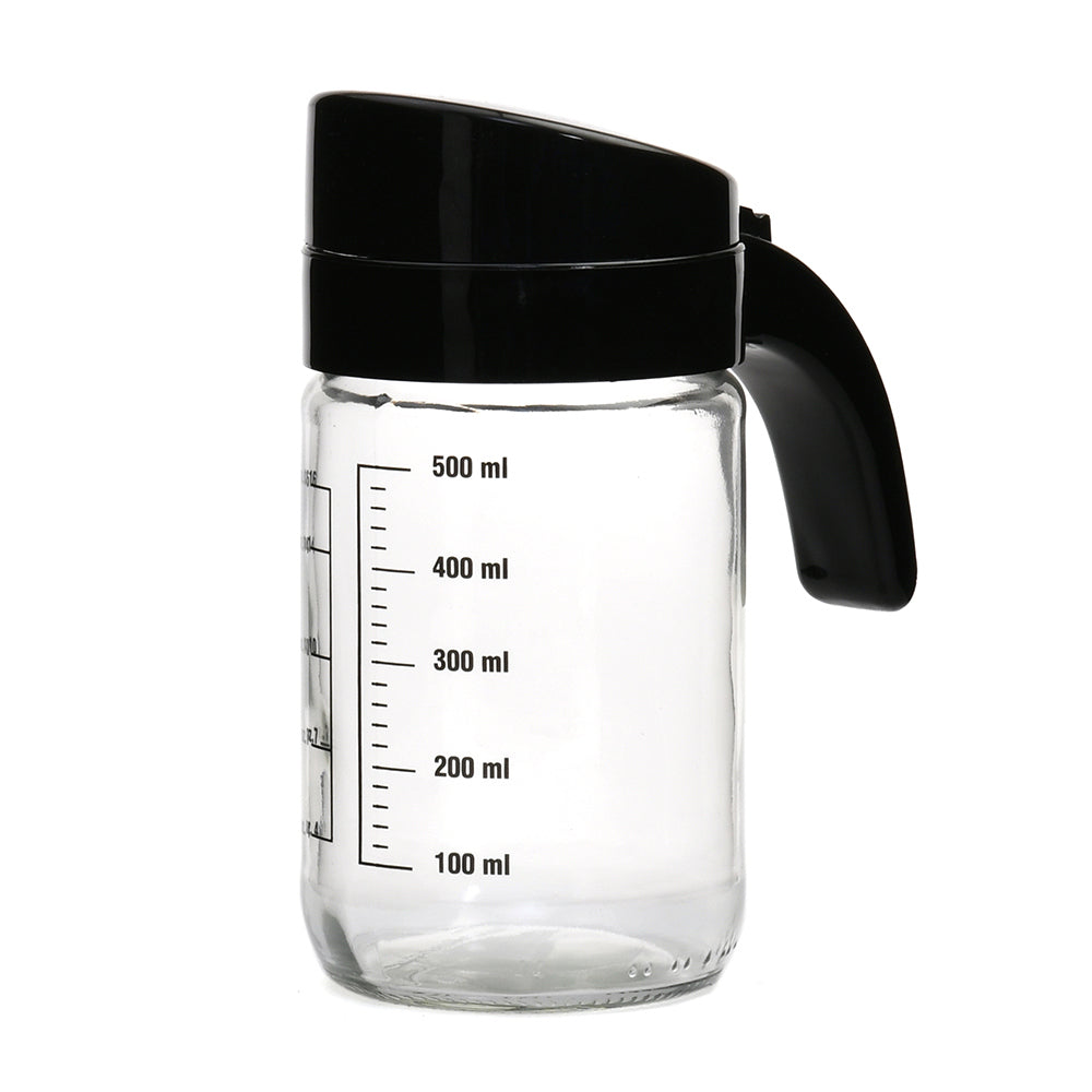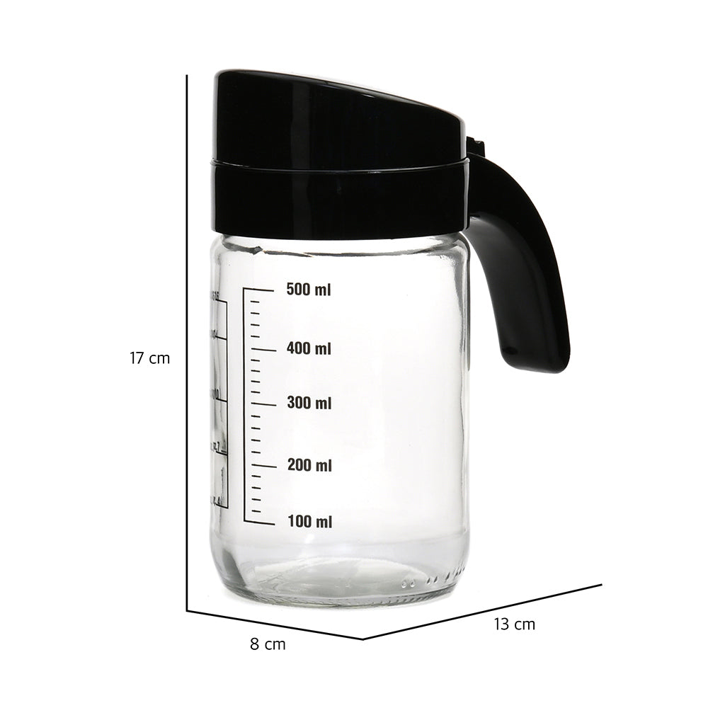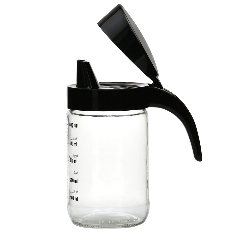 Transparent 660 ml Glass Oil Measure Jar With Lid (Transparent & Black)