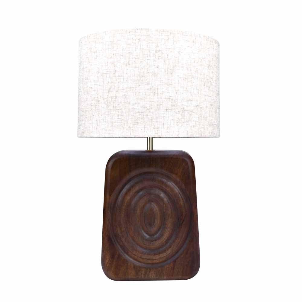 Trapeze Fabric Shade Metal & Wooden Base Table Lamp (Brown)