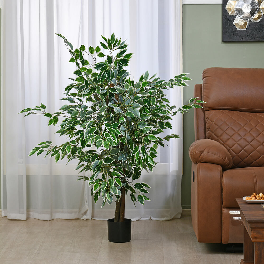 Enhance your living space with the Nilkamal Homes Tropicana Artificial Banyan Tree, expertly crafted from durable plastic to ensure long-lasting usage. This lifelike artificial tree brings the beauty of nature into your decor, adding a touch of greenery to any room. Its low-maintenance design allows for easy cleaning with a simple wipe of a dry cloth. Enjoy the beauty of lush greenery year-round, regardless of the season. Perfect for decorating living rooms, offices, hallways, or reception areas, this tree is a versatile addition to your home or office.