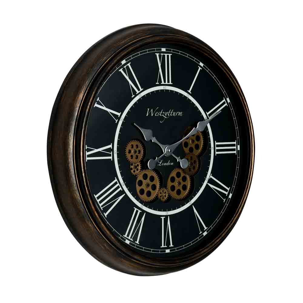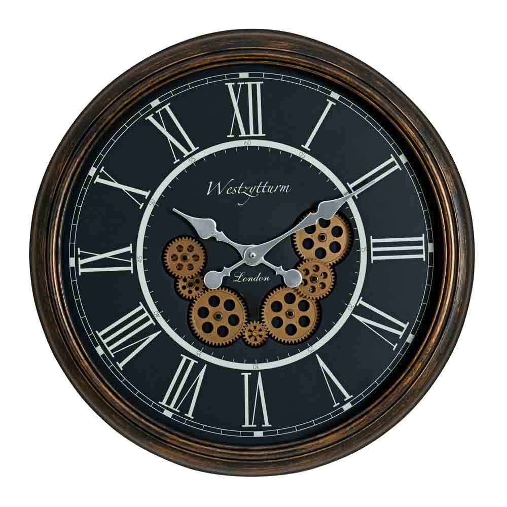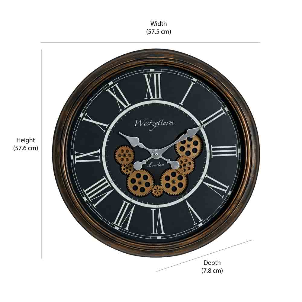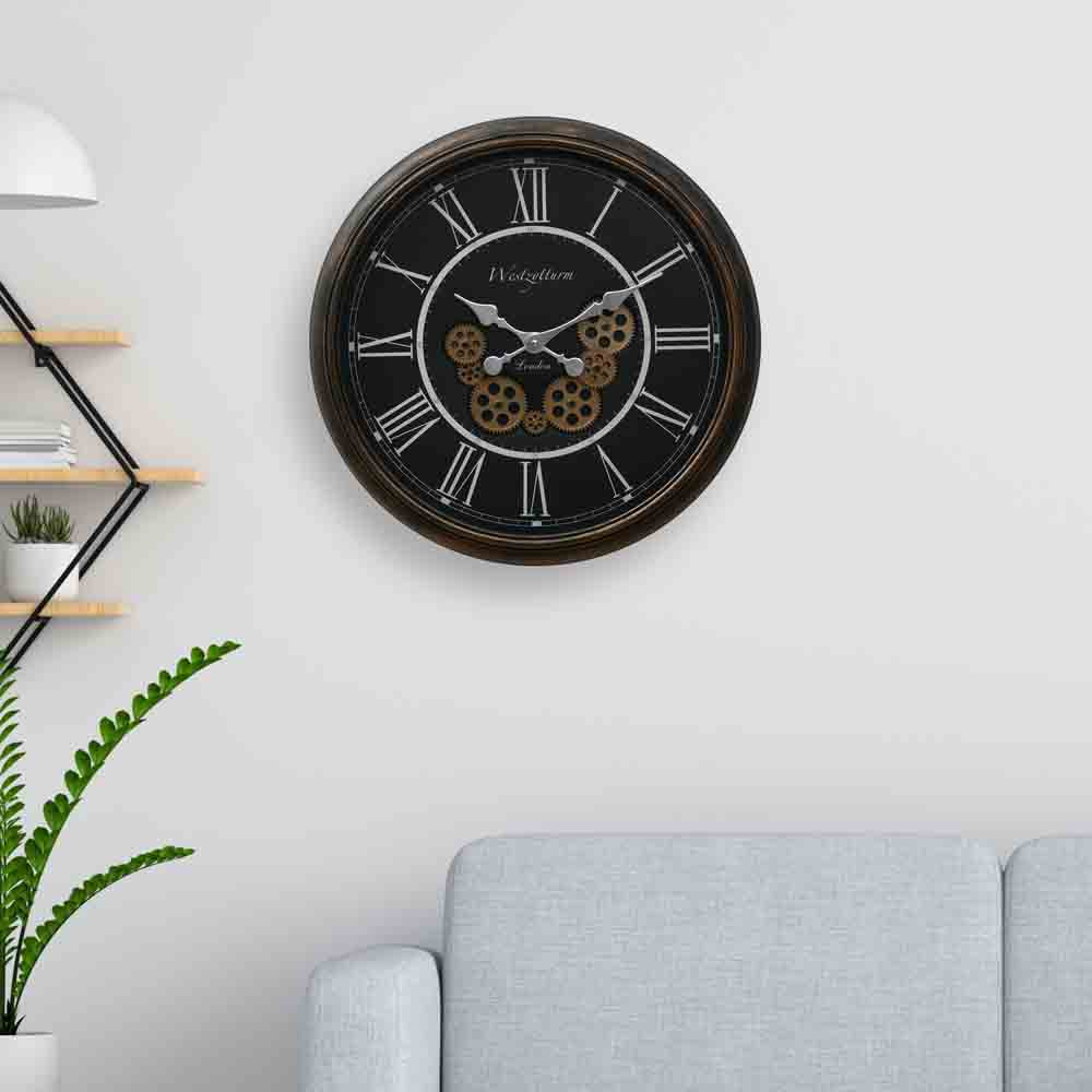 Vintage Moving Gear Analog Wall Clock (Antique Gold and Black)