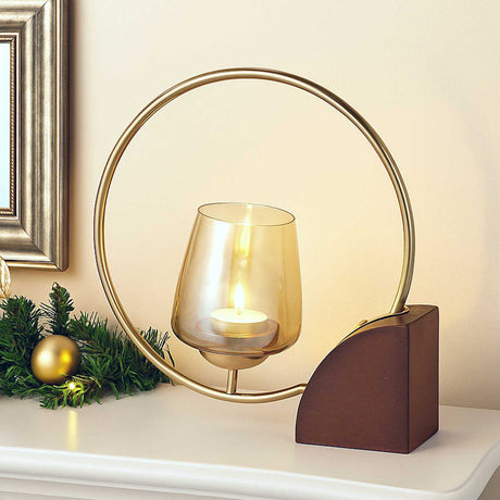 Decorative Golden Ring Candle Holder Large- Brown and Gold