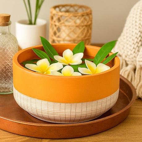Banana Leaf Floor Vase (Brown) and Marble Decorative Ceramic Bowl (White & Gold) can be kept indoors and outdoors according to your taste, and you can also include some real or artificial flowers to add a natural element. You can find these statement decor pieces in a range of Rs.1,500 to Rs. 4000.