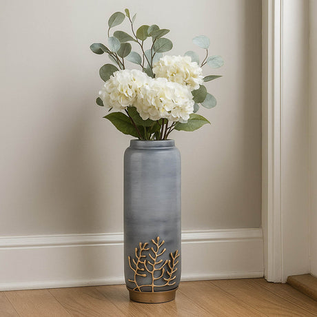 Decorative Tall Floor Vase with Golden Branch- Grey and Gold