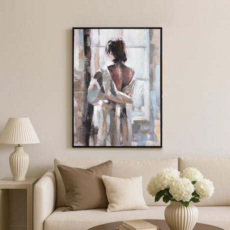 Lady by The Window Canvas Wall Painting (Black & Brown)