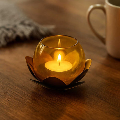 In-store ExclusiveDecorative Mini Lotus Votive Candle Stand- Yellow