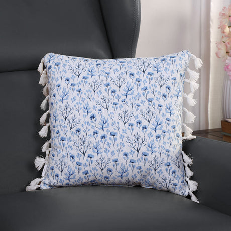 In-store ExclusiveFloral Cotton 16" x 16" Filled Cushion (Blue)
