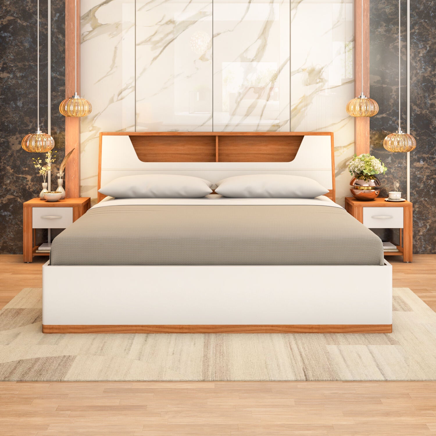 Every time we search for a dream bed, we always need something more, be it style, colour, or storage space. If these are your requirements for a bed, then the Nilkamal Homes Eternal King Bed is the answer to your needs. This bed has a stylish look, charming colour and extra storage space for your belongings. It has durable engineered wood construction with a melamine finish that is designed to last for years. With this bed, you never have to worry about storage. It has a hydraulic lift mechanism that makes the storage easily accessible. It has a total of 5 spacious compartments which let you store your belongings, be it bedsheets, clothing or toys. Additionally, it has two hollow shelves on the headboard. On these shelves, you can store your books, mobile or medicines that you may require at night time. The bed’s dual colour combination of white and teak synchronizes with multiple décors. Pair the Eternal King Bed with your favourite mattress and experience the joy of sleeping.