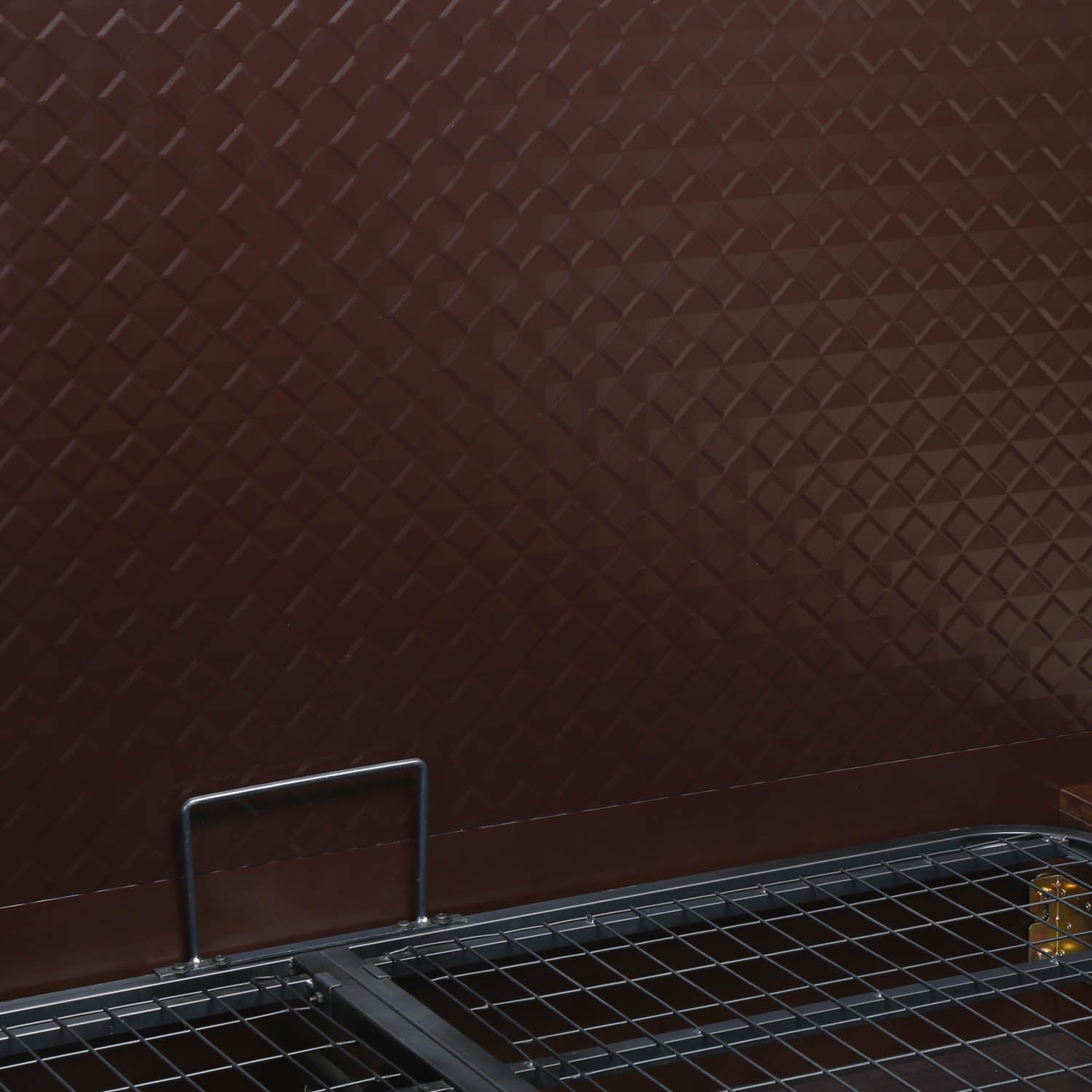 - Broad curved edge headboard with matte-finish diamond shapes for a sophisticated touch