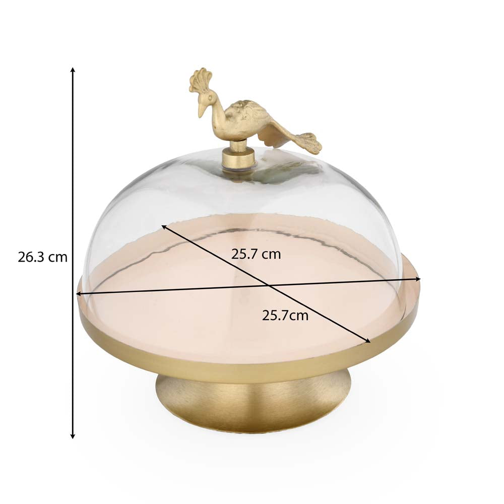 The Nilkamal Homes Cake Stand blends both beauty and functionality with its design. Crafted with a transparent glass dome featuring a delicate peacock motif and a sleek gold-finish base, it ensures your cakes and desserts are well-protected while being beautifully displayed. The material combination of glass, aluminium and iron offers both durability and elegance, making this cake stand perfect for everyday use as well as special events. Its practical design keeps your treats fresh and presentable, while the gold base adds a luxurious touch to your kitchen or dining room.