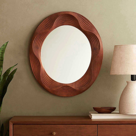In-store ExclusiveWavy Round Fluted Wall Mirror- Brown