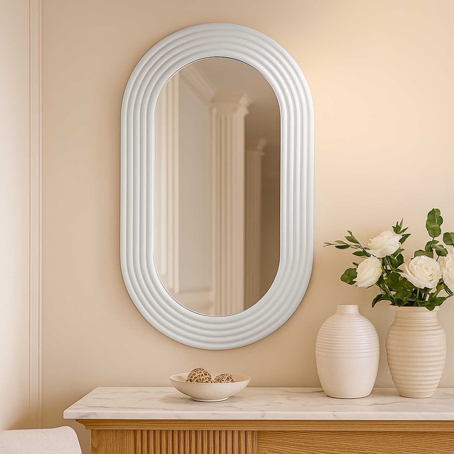 Oval Arch Wall Mirror- White
