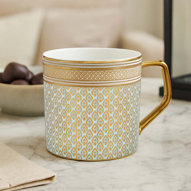Nilkamal Homes brings you a set of 6 elegant mugs, featuring patterns in gold on a light blue base with matching golden handles. Made from premium fine china, these mugs add a touch of luxury to your everyday tea or coffee moments. Ideal for both daily use and special gatherings, they also make a perfect gift for weddings, housewarmings, or festive occasions.