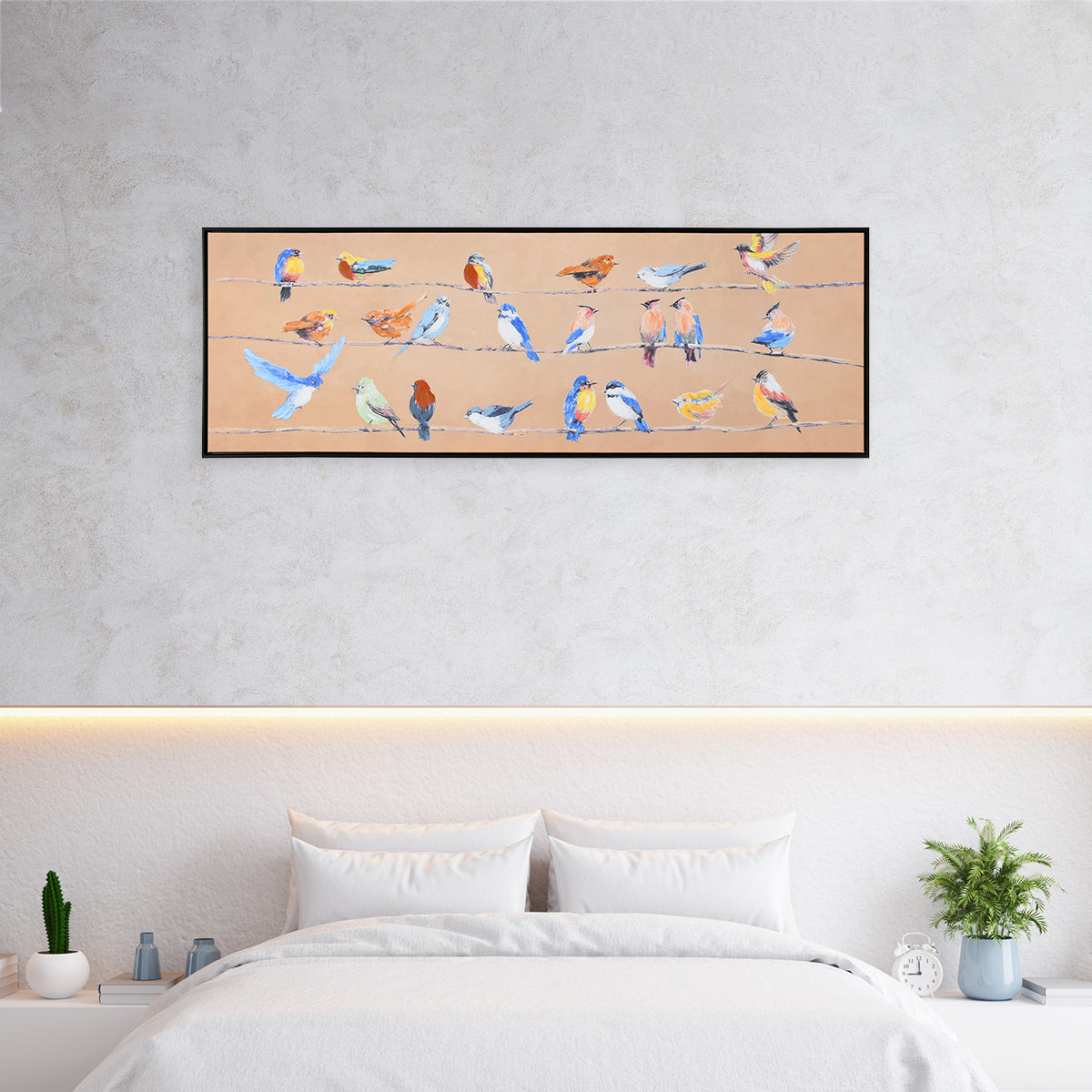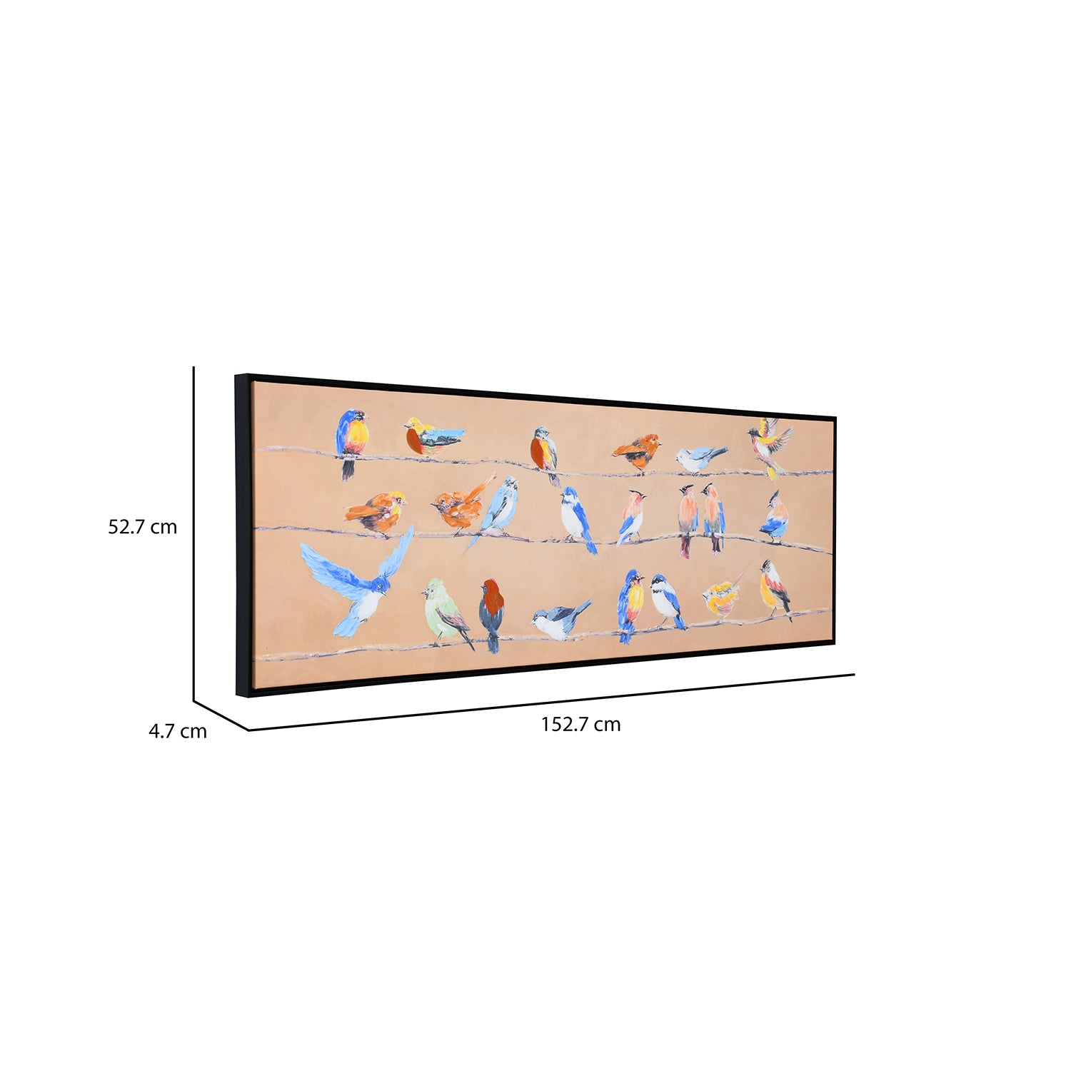 Enhance home aesthetics with the artistic Birds Chatter Canvas Painting from Nilkamal Homes. This cheerful artwork, made of wood, canvas, and PS foam, adds a touch of art and positivity to your living rooms, bedrooms, and office spaces. It can also serve as a thoughtful present for your loved ones. Get one for your home today.