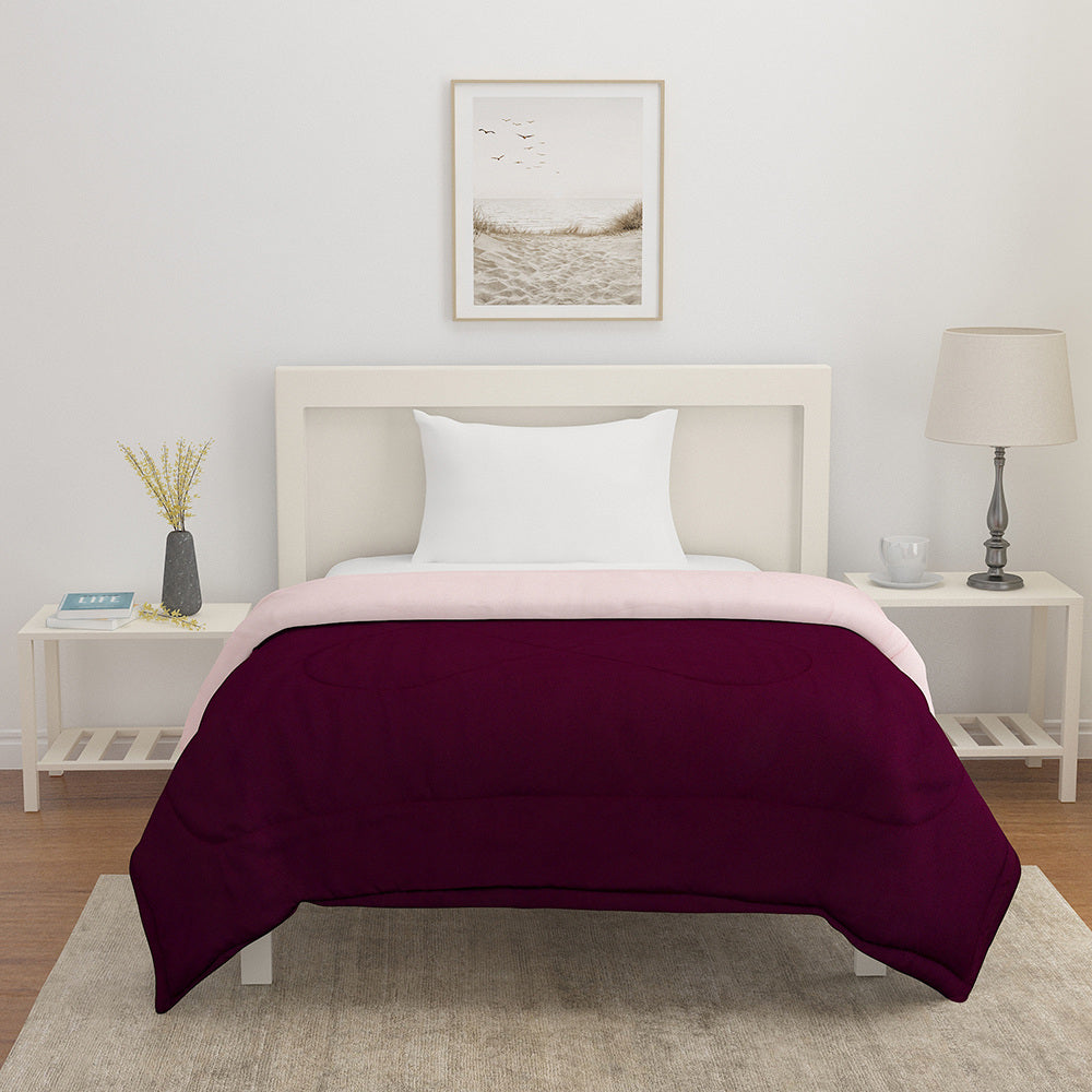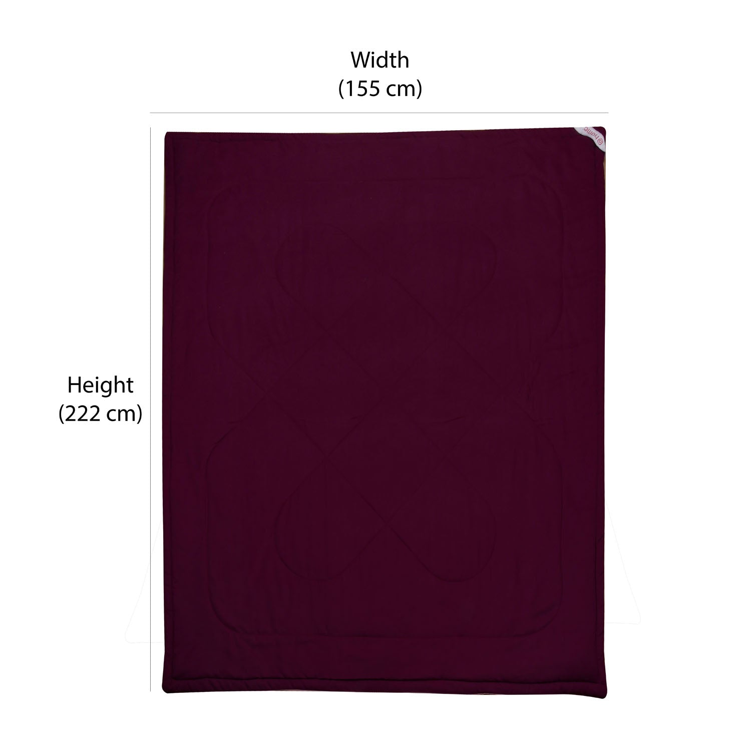 The Nilkamal Homes Comforter combines functionality and style, enhancing the look of your bedroom. It is designed to fit single beds and has a reversible feature with dual shades, enabling you to update your decor with ease. The high-quality polyester fabric delivers lasting softness and durability, while the 150 GSM weight provides warmth without feeling heavy. The vibrant maroon hue enhances the aesthetic appeal, effortlessly complementing various decor styles. Enjoy a cozy and comfortable sleep every night with this thoughtfully designed comforter.