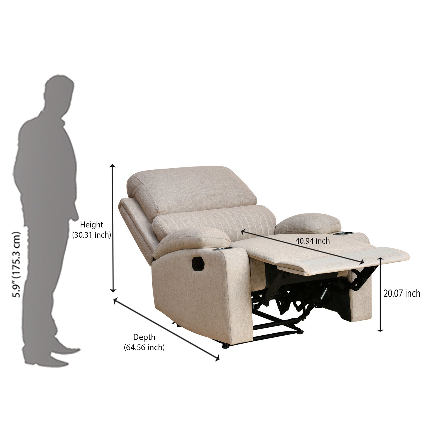 Comfy 1 Seater Fabric Manual Recliner with Cup Holder- Beige