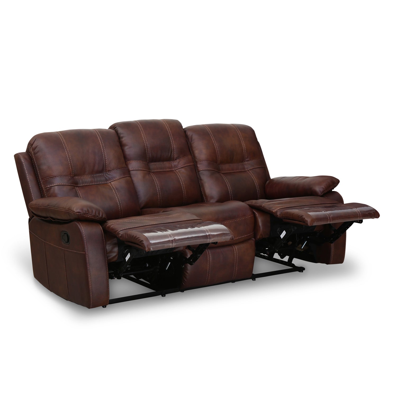 The Nilkamal Homes Wilson 3-Seater Recliner features a contemporary design with a sleek frame that seamlessly complements modern interiors. It includes one stationary seat and two manual reclining seats, delivering an immersive lounging experience. The semi-aniline leather upholstery in a sophisticated brown finish adds a timeless charm to the piece. Soft cushioning and padded armrests provide exceptional comfort and lumbar support. The sturdy pinewood frame ensures durability, while the sturdy plastic legs offer reliable support, making this recliner a perfect blend of style and functionality.