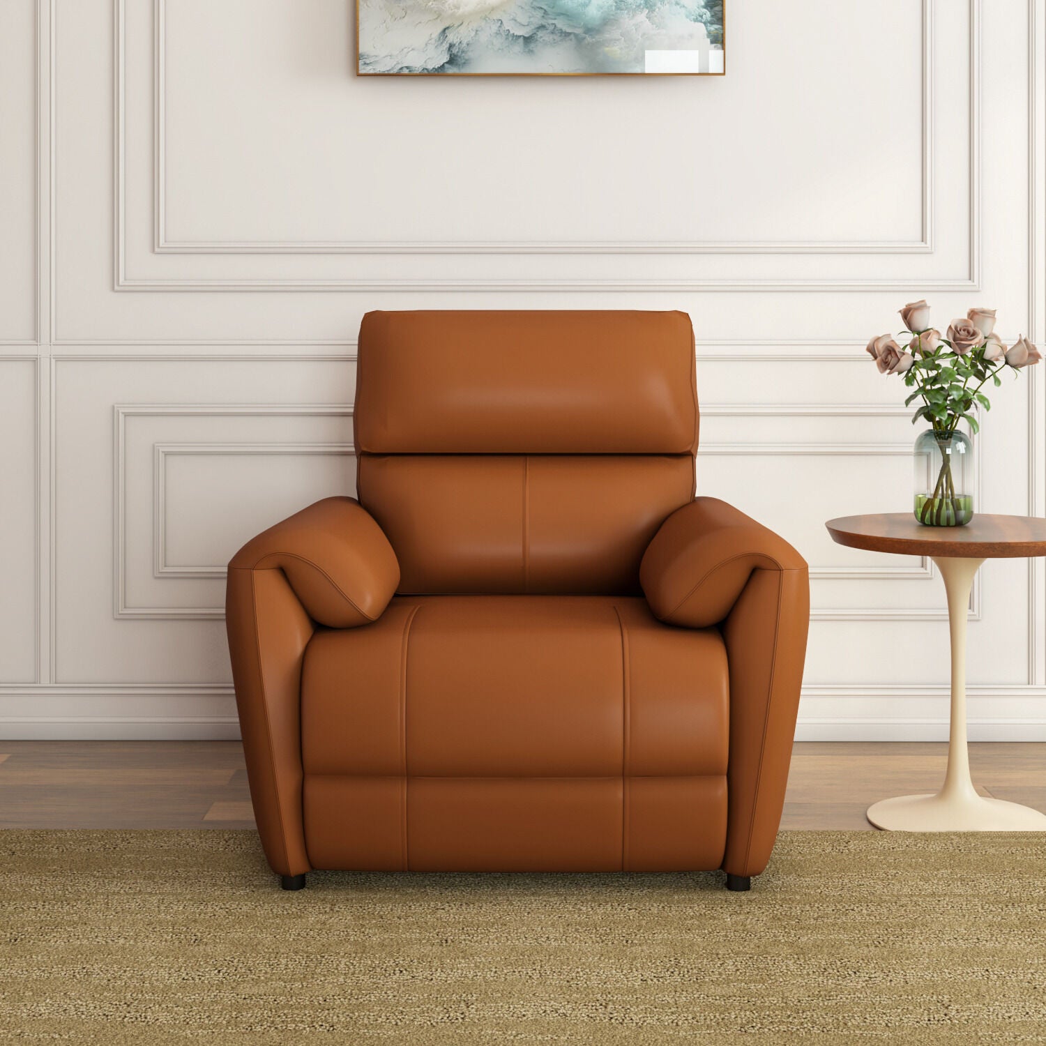 The Nilkamal Homes Wingston 1-Seater Electric Recliner enhances modern interiors with its sleek bends and curves. Its ergonomic design provides excellent lumbar support for superior comfort. This electric recliner features a built-in USB port, letting you charge your devices while you relax. Plush cushioning with premium leather and PVC upholstery keeps you relaxed for hours. Sturdy pine wood and engineered wood construction ensure long-lasting strength and stability, making it a reliable addition to your living space.