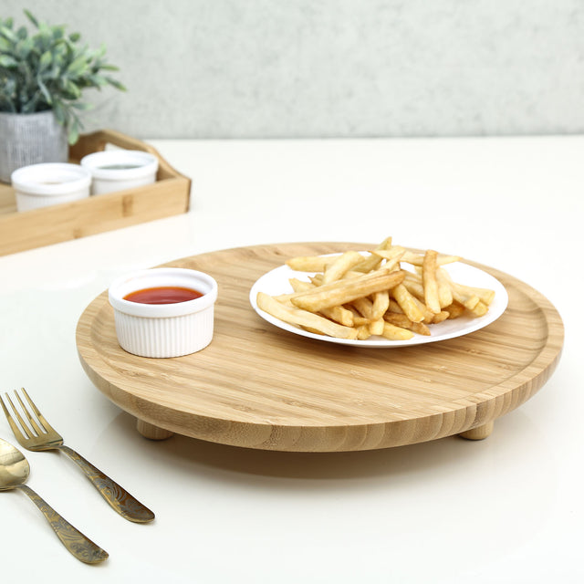 Introducing the Nilkamal Homes Platter, a sophisticated enhancement that elevates your presentation. The platter is crafted from sturdy bamboo to ensure durability and lasting usage. It features a simplistic design that gracefully enhances your table, and its round shape offers a classic and versatile look for various events. Tailored for serving, it becomes the ideal centrepiece for presenting snacks, pizzas and starters with its aesthetic charm.