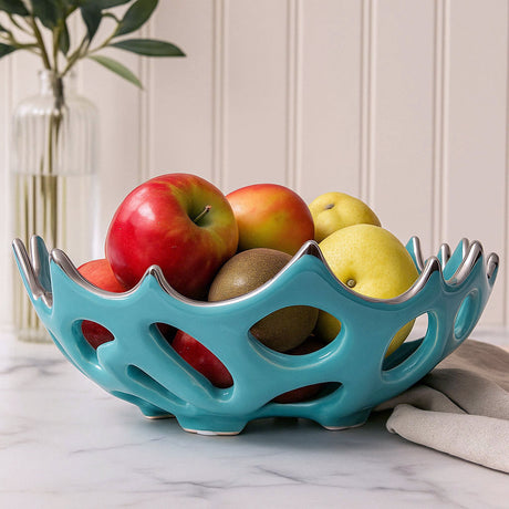Cutwork Ceramic Round Bowl- Sea green & Silver