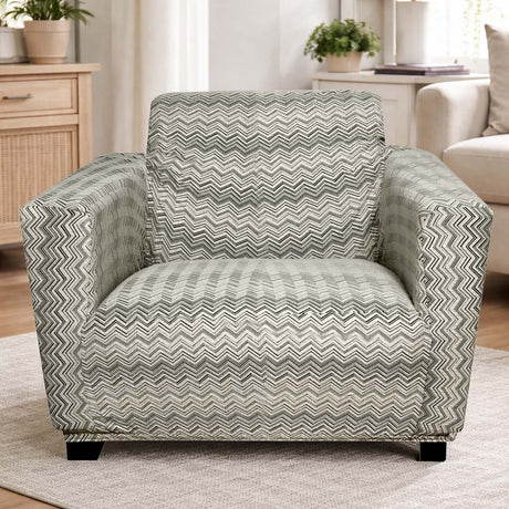 1 Seater Jaquared Knit Sofa Cover- Grey