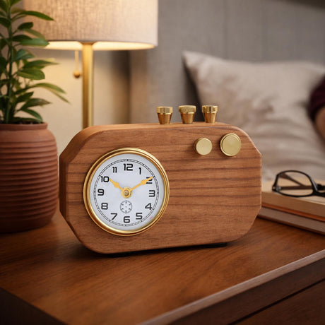 • Radio Look Wooden Table Clock- Brown