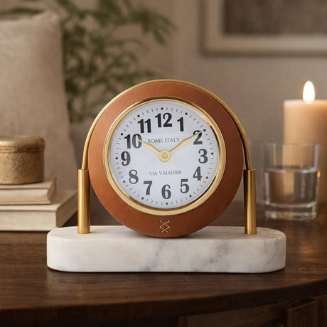 Sphere Table Clock with Marble Base- Brown