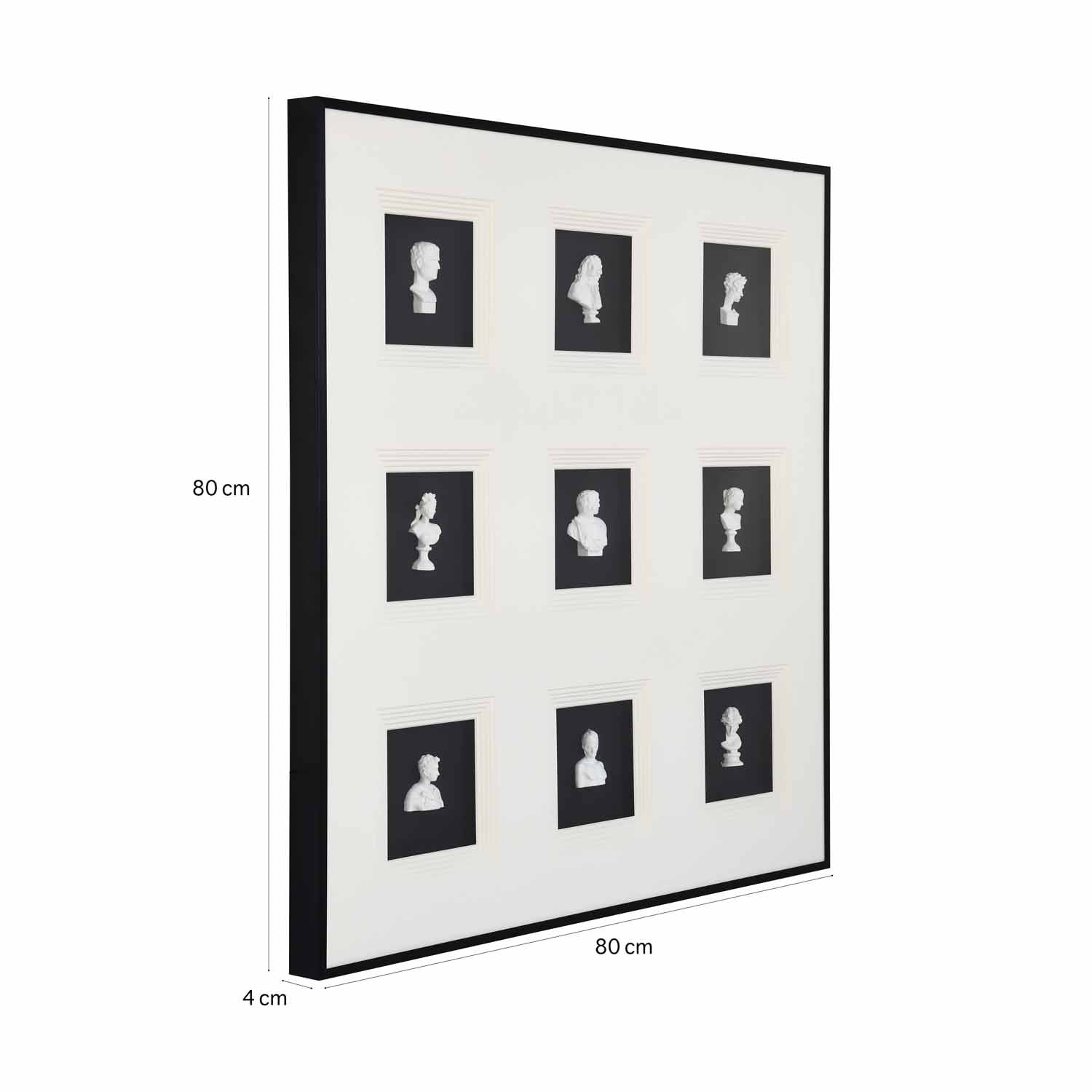 The Nilkamal Homes Wall Decor brings classical elegance into the present with stylized 3D Greek faces reimagined in a modern form. Measuring 80x80 cm, this striking piece transforms empty walls with its bold yet simple design. Crafted with a durable PS frame, glass, and MDF backing, it ensures long-lasting appeal. Whether placed in studies, foyers, or libraries, it adds a touch of sophistication and works beautifully in symmetrical arrangements or as a singular statement piece.