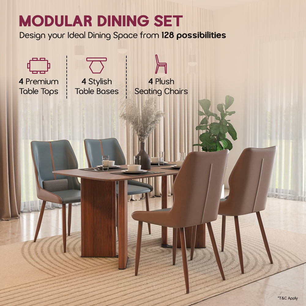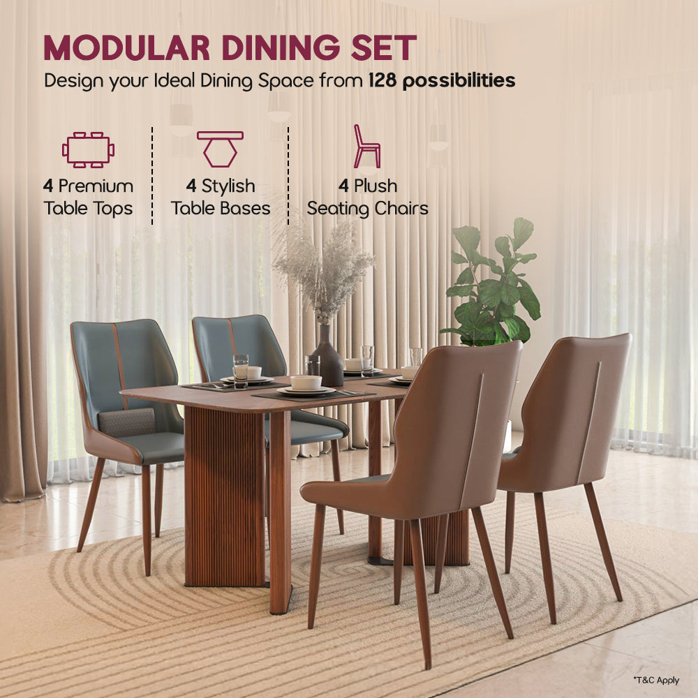 The design style of modular dining set ranges from minimalist modern to warm contemporary, depending on the top and base you choose. Options include sleek metal bases, fluted MDF designs for texture, and MDF design bases paired with ceramic, marble, or walnut finish tops for a premium look.