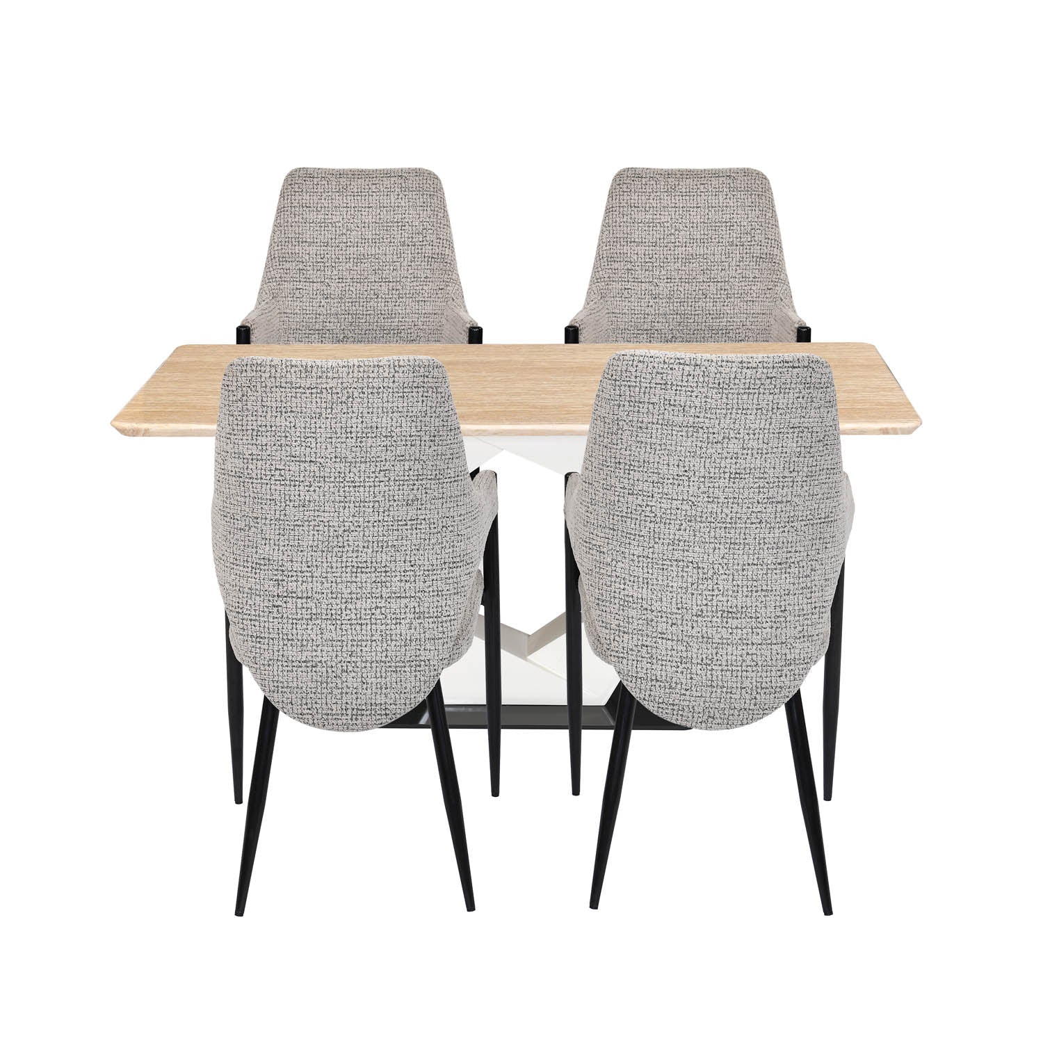 4 Seater Trava Marble Dining Set with Hexin Base and Tierra Chairs- Travertine
