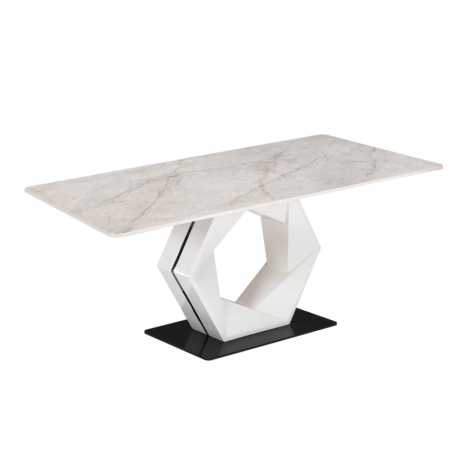 Bring comfort and elegance to your dining space with the Hexin Bevon 6 Seater Dining Table. Designed to add warmth and modern charm, this dining set features a soft beige ceramic tabletop that blends beautifully with any décor and is easy to maintain, resisting heat, scratches, and stains. The stylish hexagon base with metallic accents ensures strong stability, while the durable wood and metal construction offer long-lasting strength. The chairs are upholstered in soft leatherette with angled backrests and elegant quilting, providing excellent comfort for extended meals. Ideal for family dining, entertaining guests, or creating a cosy dining setup in apartments or homes, this set combines style, comfort, and everyday durability effortlessly.