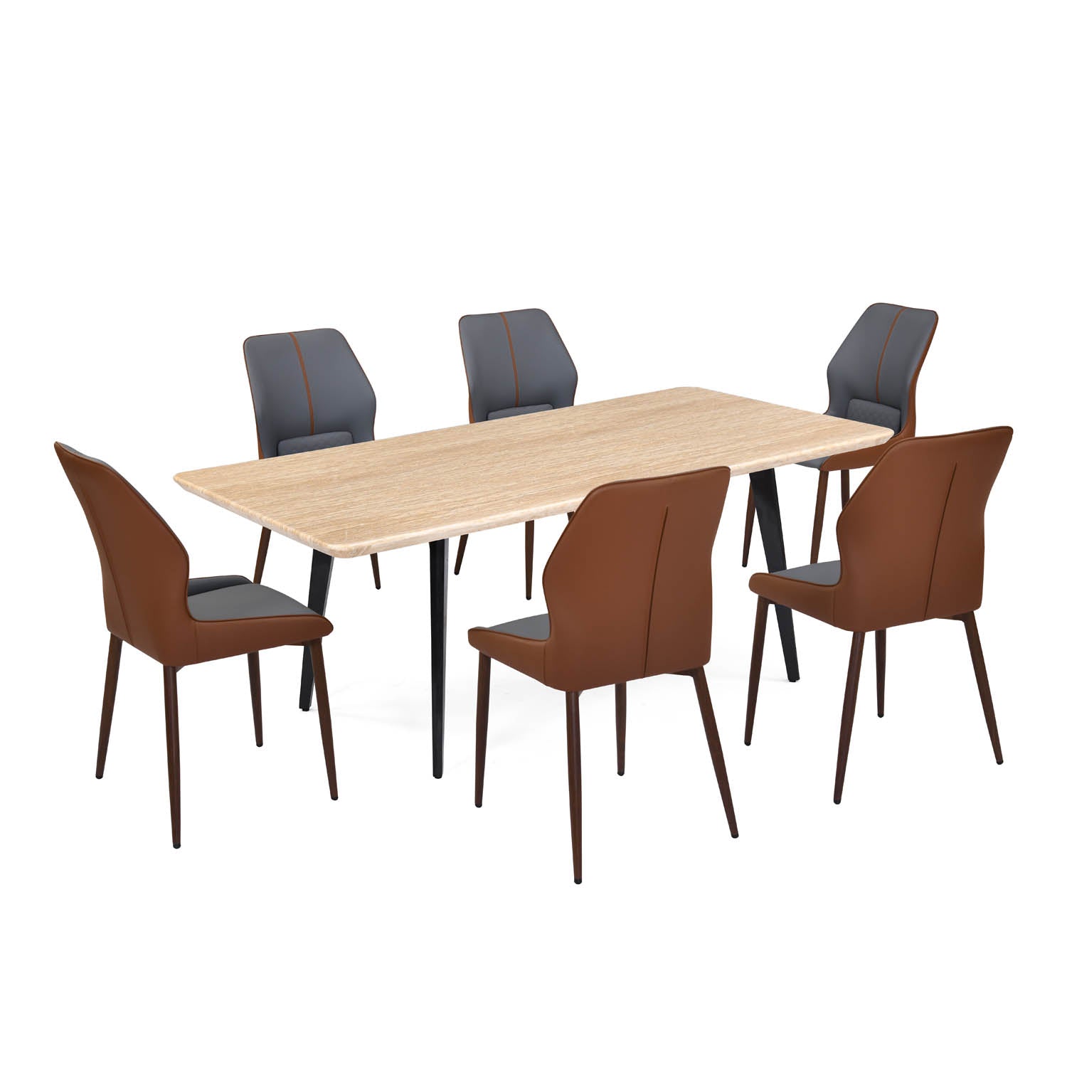 6 Seater Trava Marble Dining Set with Quado Base and Ellipse Chairs- Travertine