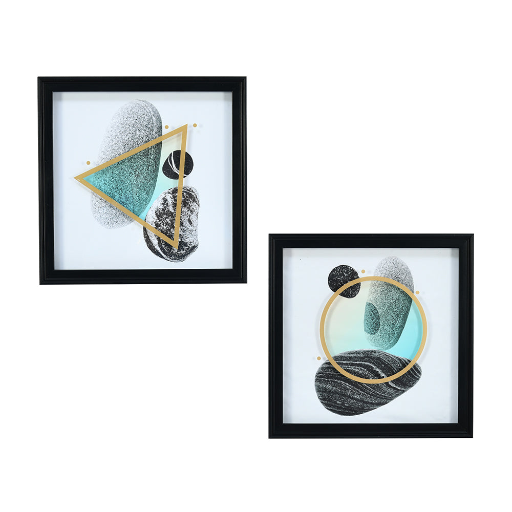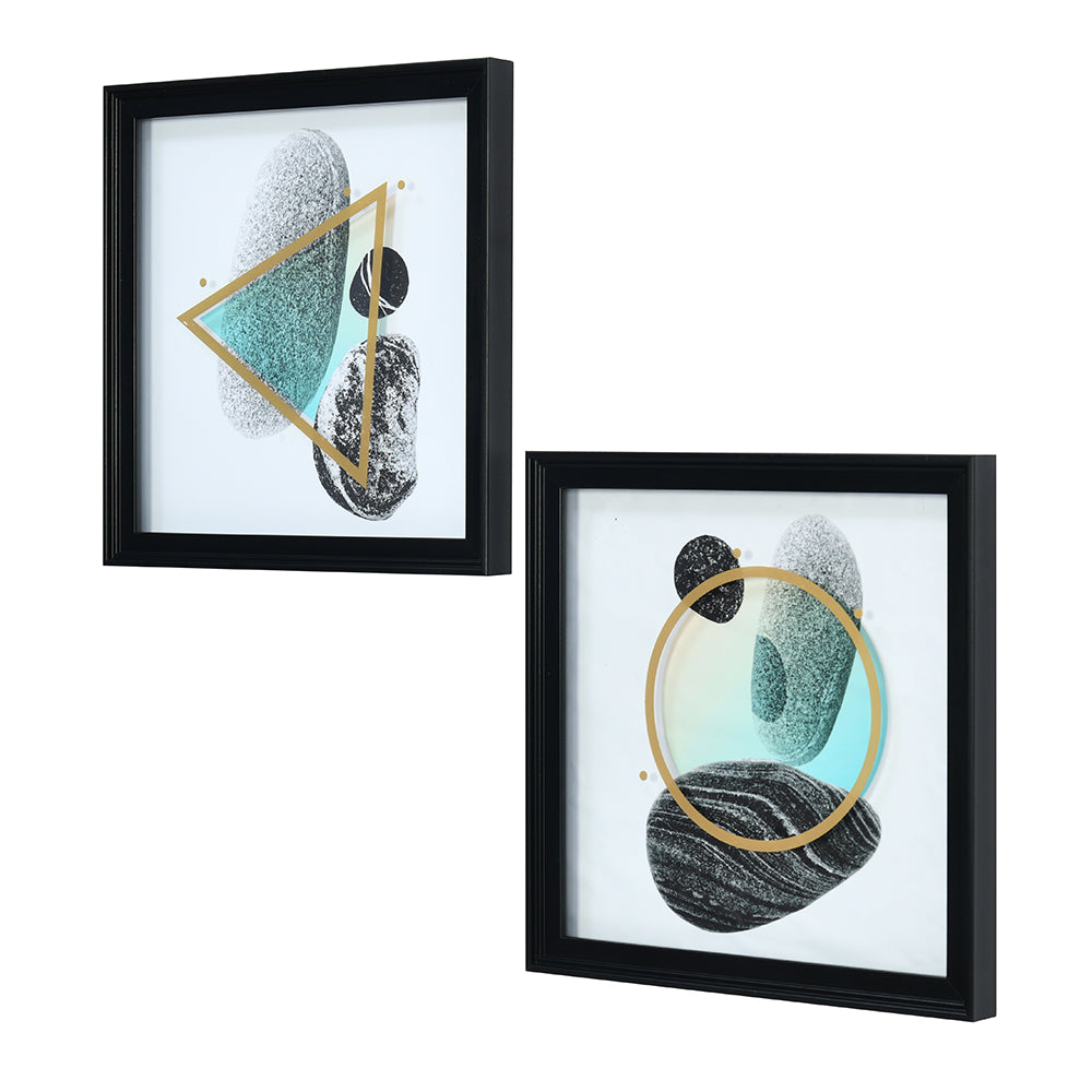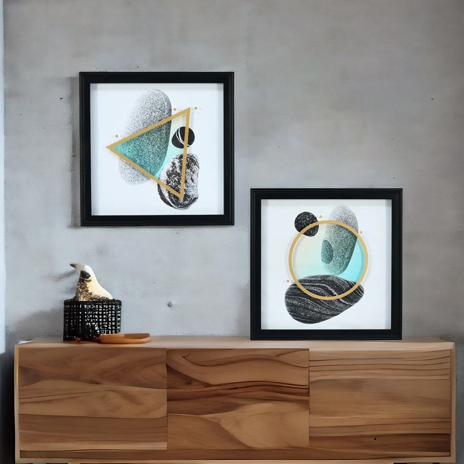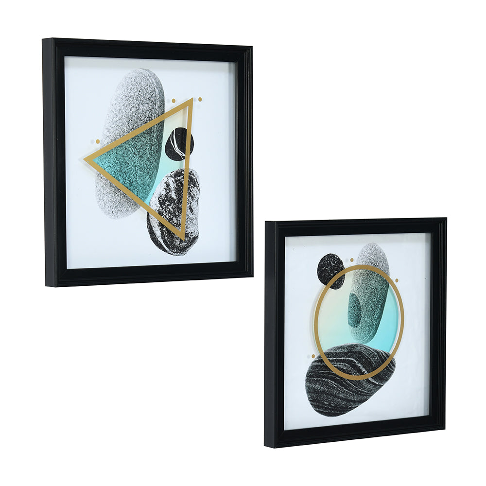 Acrylic glass art paintings combine art and beauty to make an elegant appearance in your home. Its nature-inspired illustration represents textured river rocks and geometric shapes in striking green, black, and gold. These two modern paintings lend an artistic and peaceful vibe to your living room, bedroom, and office spaces. With sturdy support from MDF on the back and a layer of acrylic glass on top, this timeless glass art painting is here to stand the test of time. You can easily wall-mount them on your home walls or consider gifting them to your art-loving friends and family. Let art define the vibe of your home. Get your Acrylic Glass Art Paintings from Nilkamal Homes today.