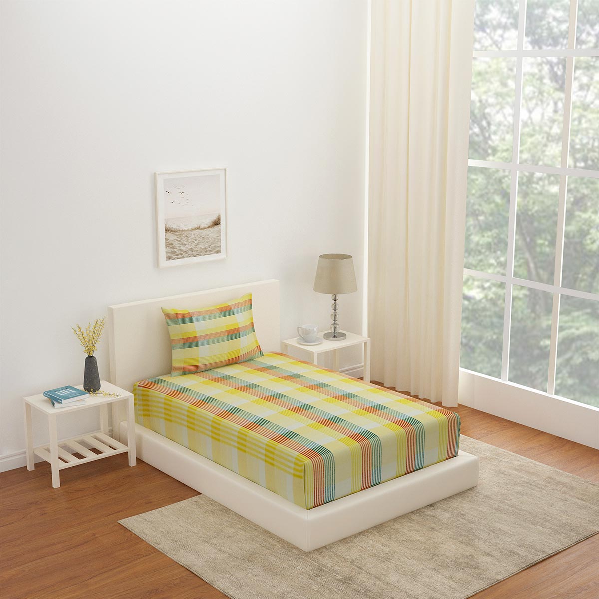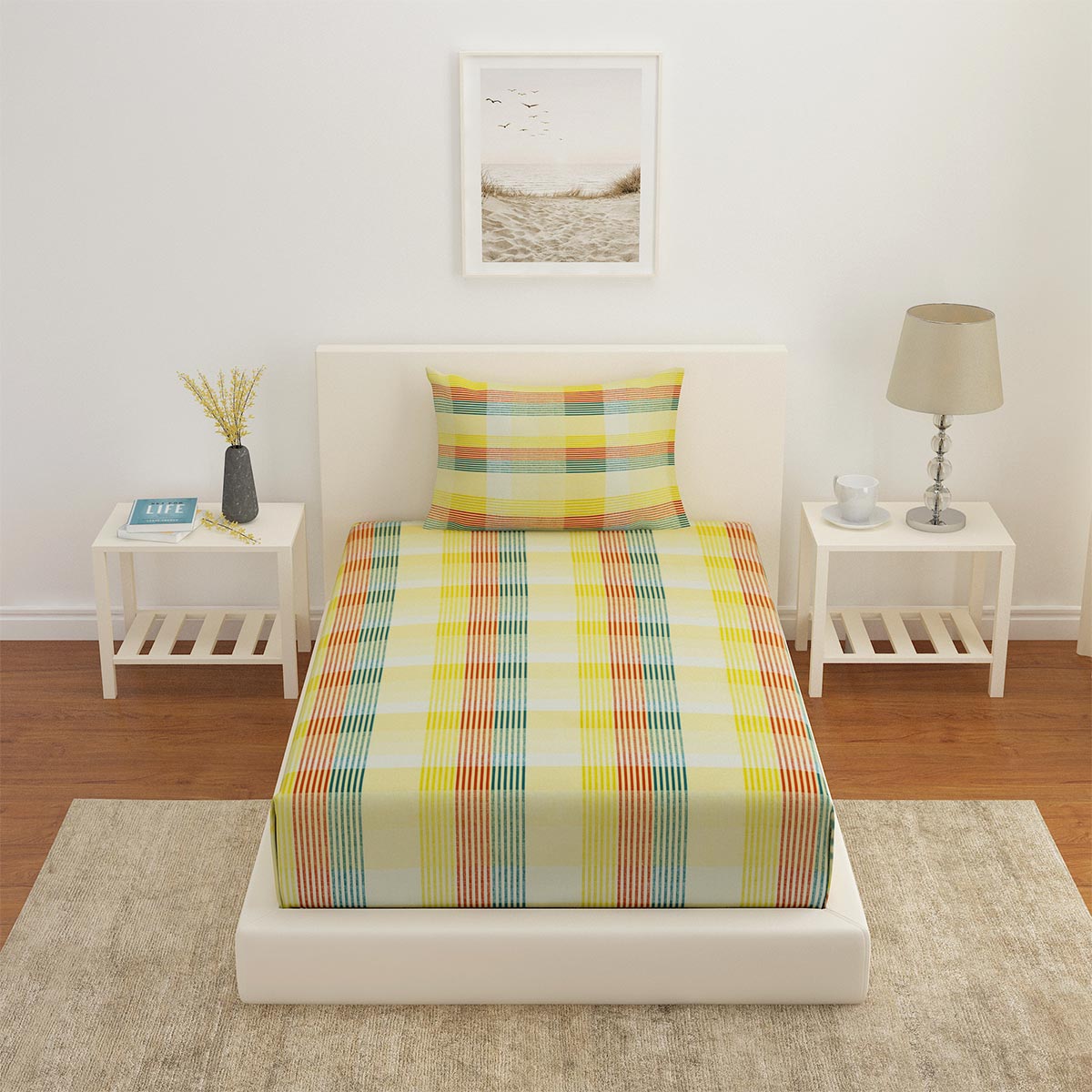 Arias by Lara Dutta Checkered CVC Satin Single Bedsheet With 1 Pillow Cover (Multicolor)