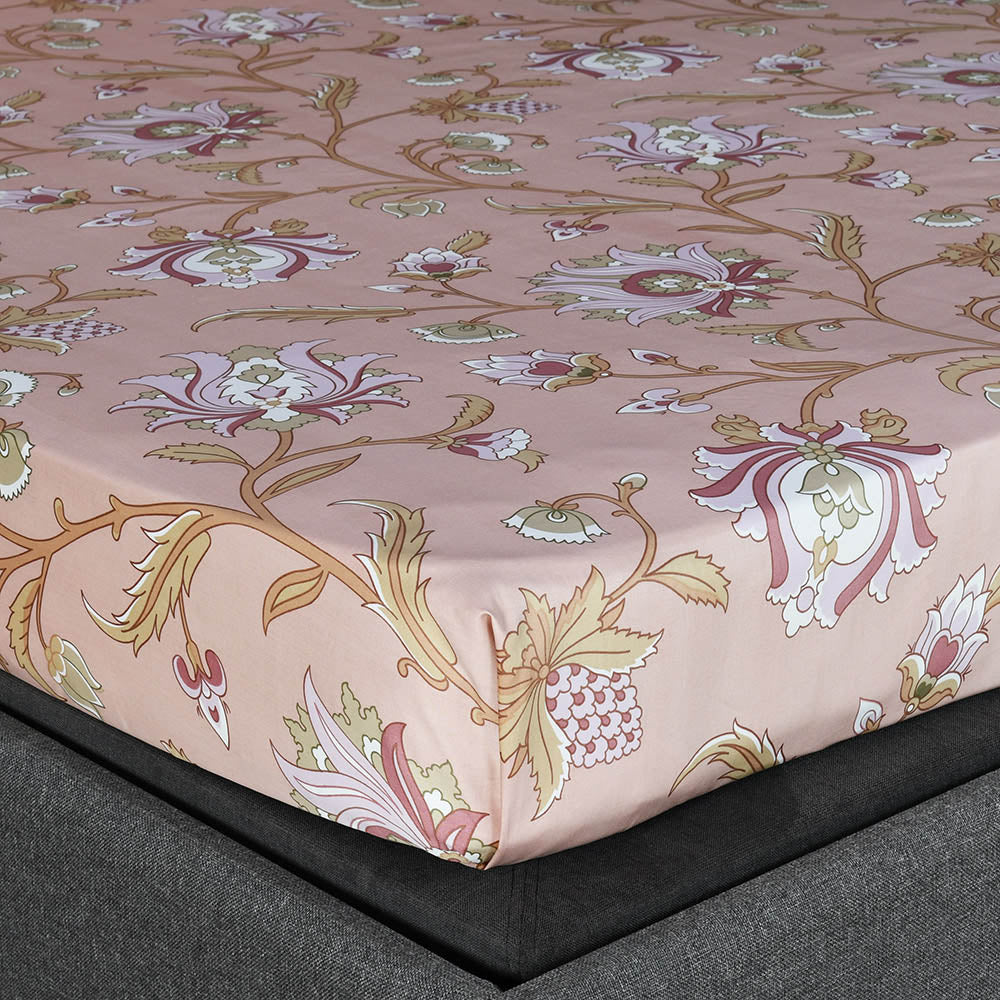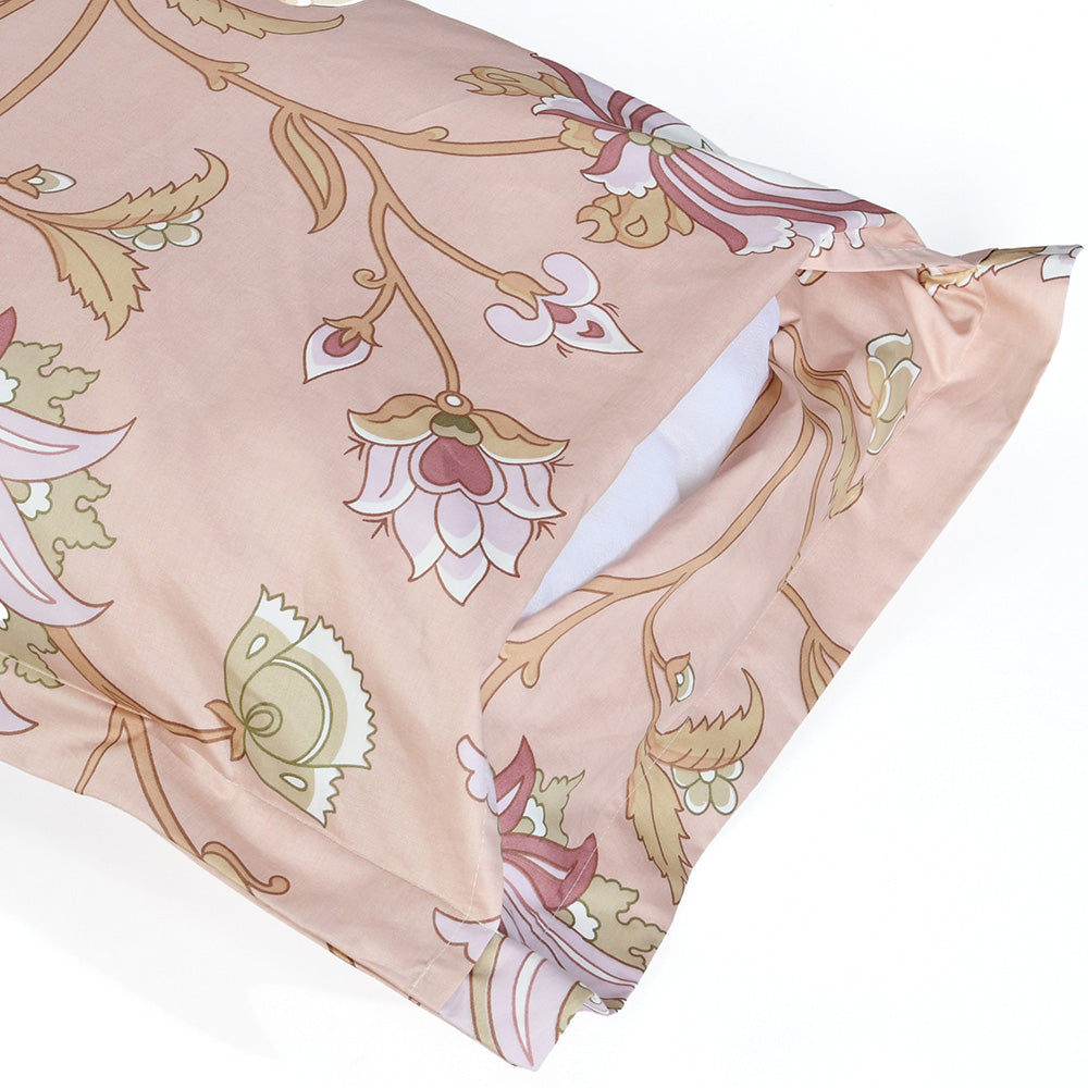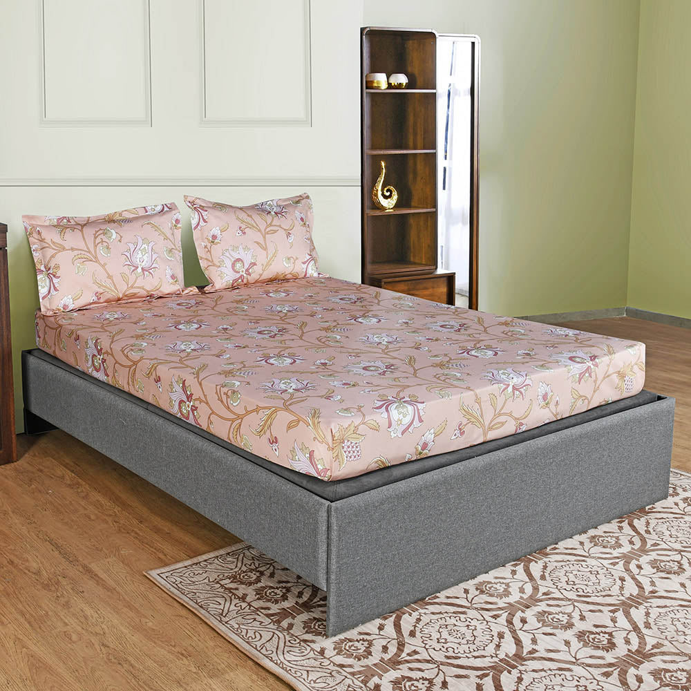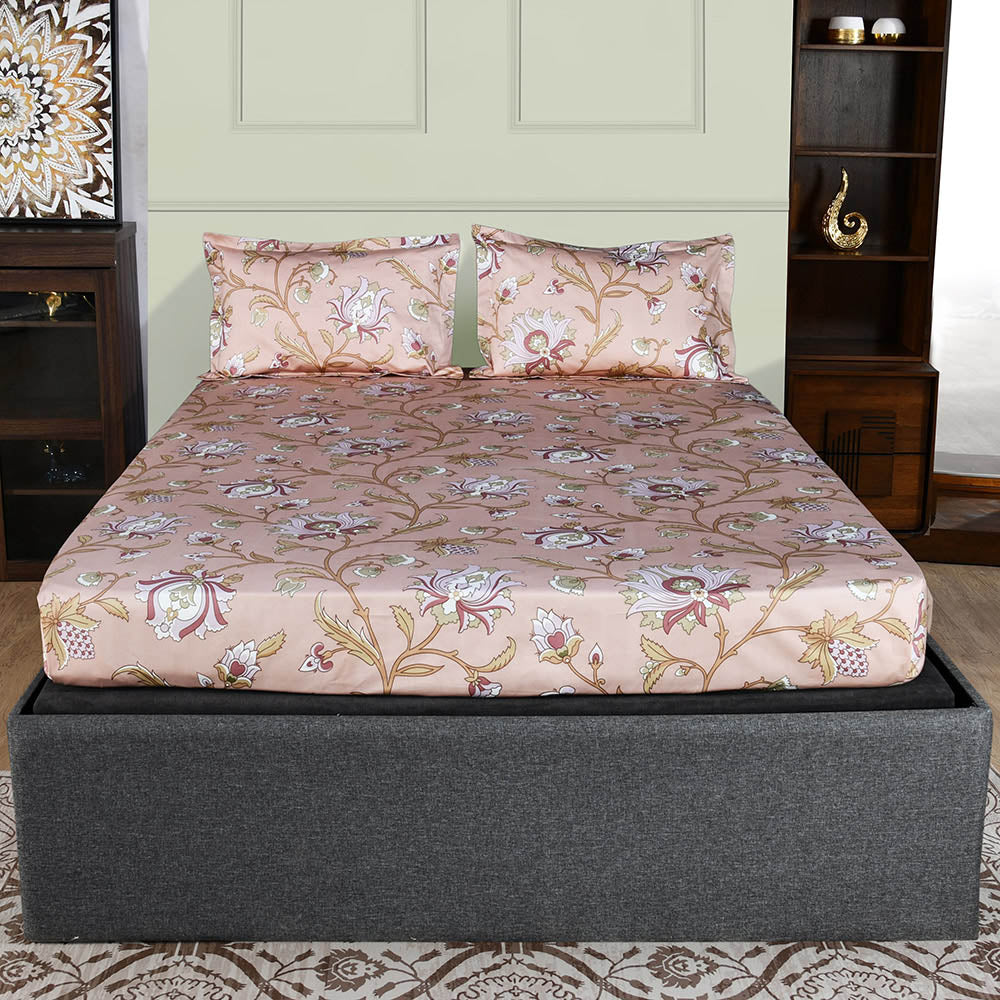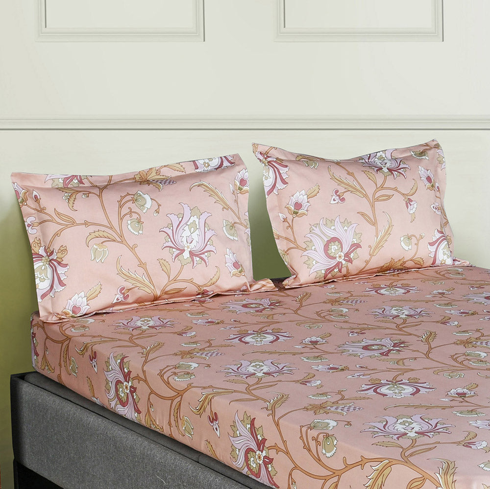 Arias by Lara Dutta Floral Cotton King Bedsheet With 2 Pillow Covers (Peach)