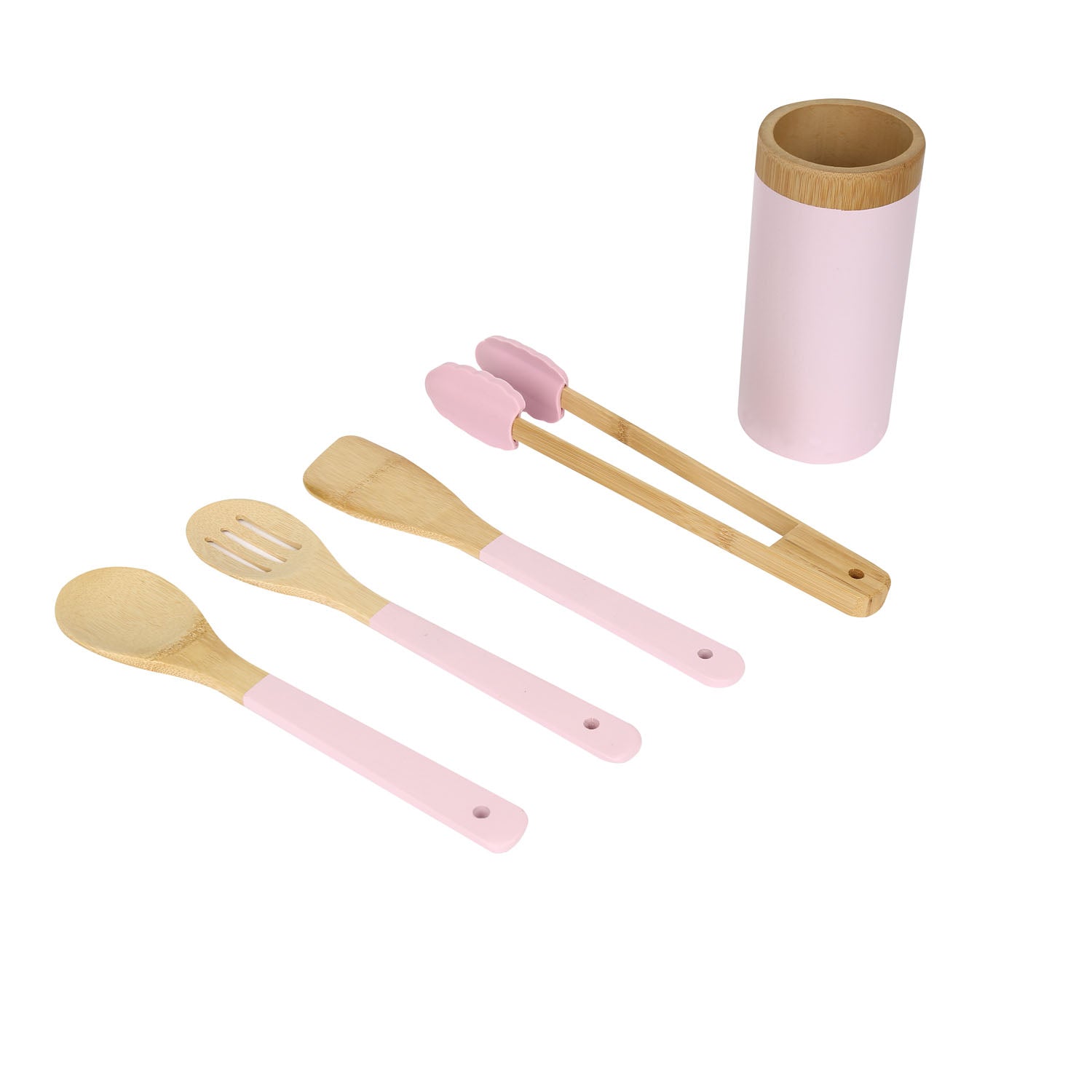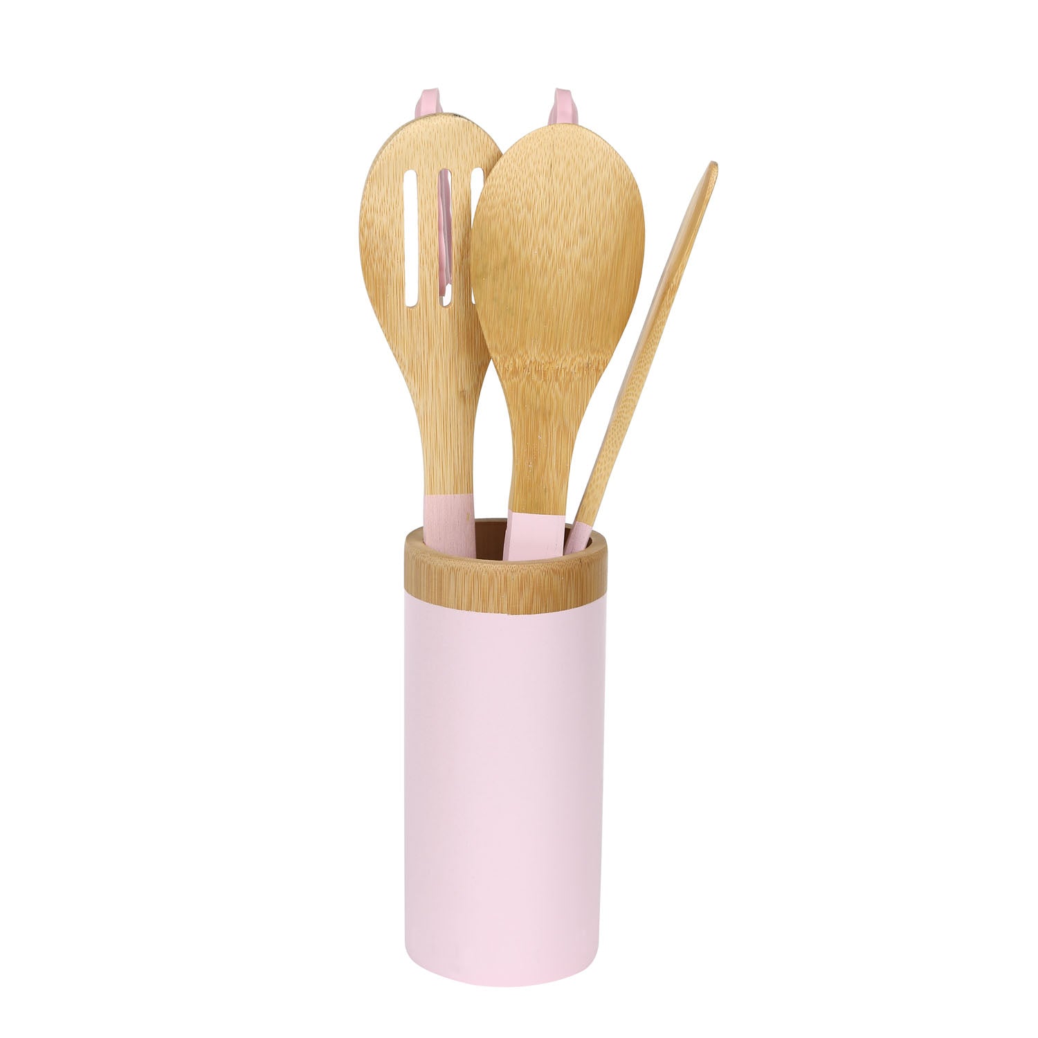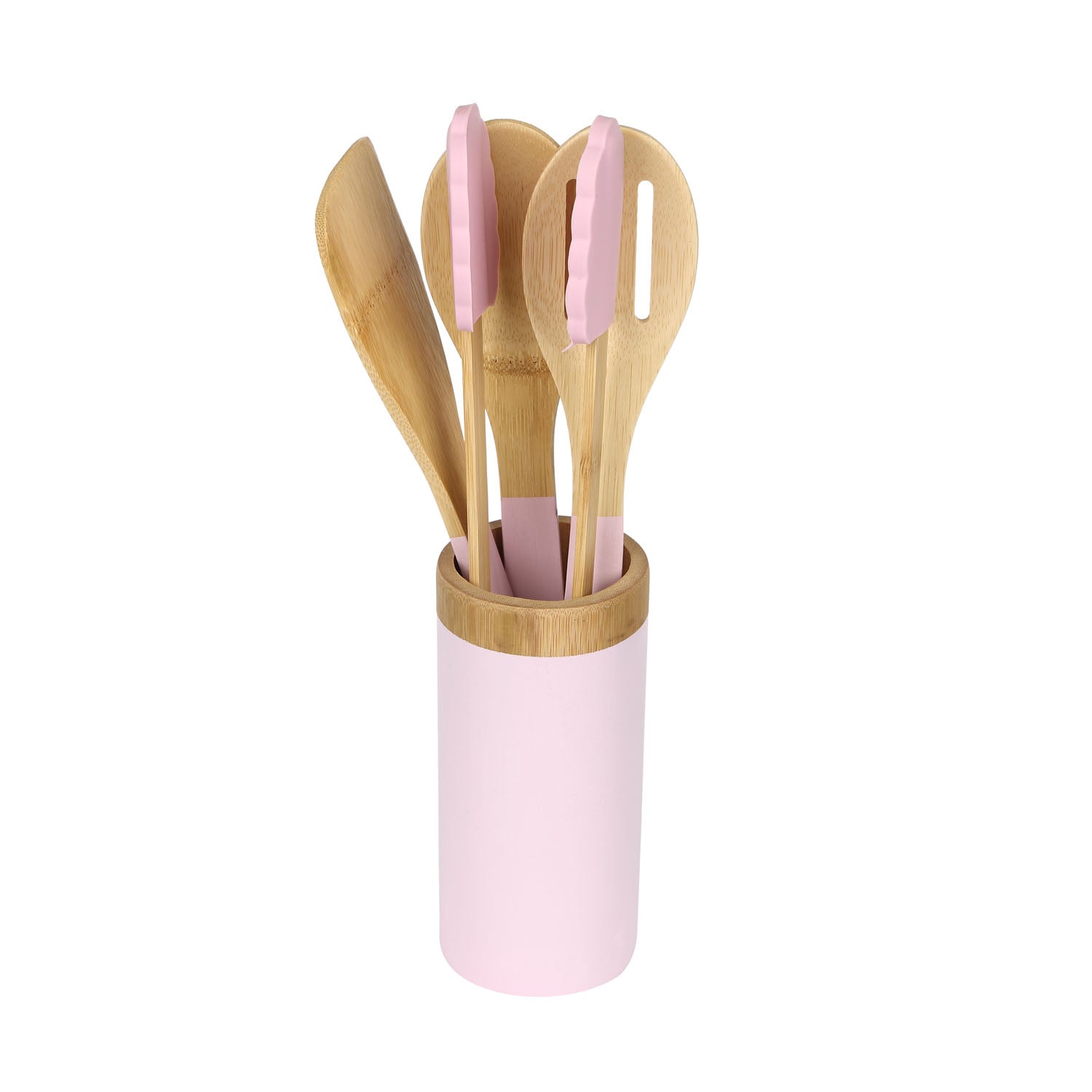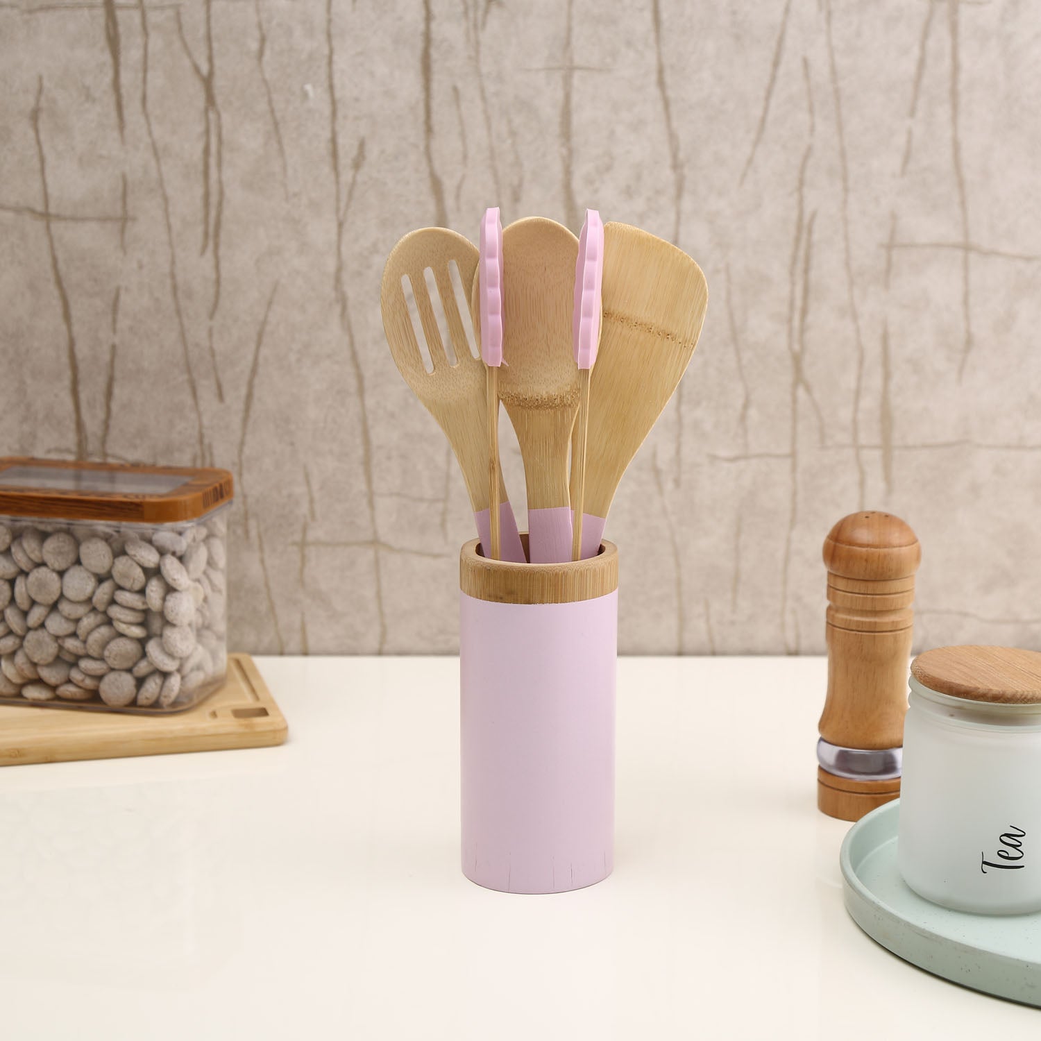 Bamboo Cooking Spoons Set with Holder (Brown & Purple)