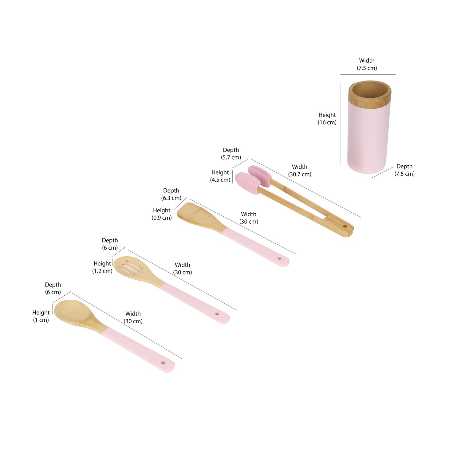 The Nilkamal Homes Cooking Spoons Set with Holder brings a vibrant touch to your kitchen, blending modern aesthetics with practicality. It includes a spoon, slotted spoon, spatula, tong, and a sleek canister holder, ensuring a complete cooking experience. The silicone-handled spoons and spatula provide a secure grip, while the silicone-tipped tongs protect cookware from scratches. Crafted from durable bamboo and heat-resistant silicone, this set guarantees long-lasting performance. Lightweight yet sturdy, it effortlessly handles everyday cooking needs.