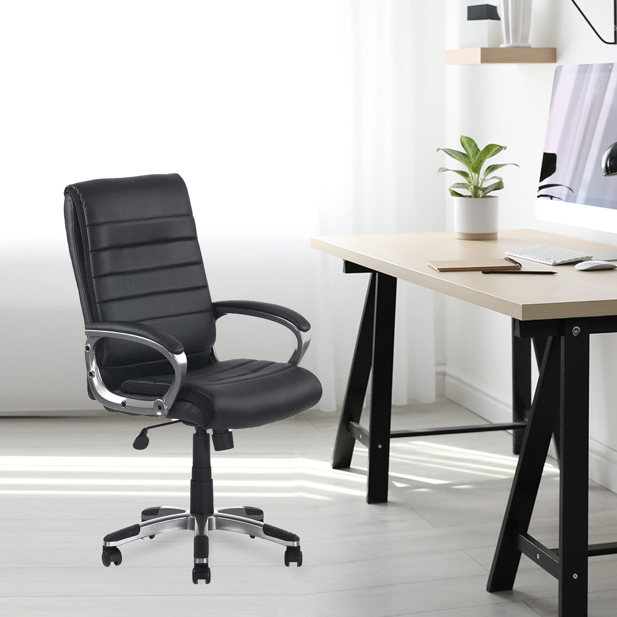 An office setup is never complete without the right chair. The Bold Executive Office Chair is here to complete your setup and provide all-day comfort while working or relaxing. This chair has a PU cushioned seat & back with PU fabric upholstery for utmost comfort. And when your arms are tired, you can rest them on the silver powder-coated metal armrests, which have soft PU pads. The chair has a centre tilt mechanism that allows you to recline the back for maximum comfort. Even in matters of stability, the Bold is excellent. It has a metal nylon star base with a silver powder coating that provides sturdiness and twin-wheel nylon castors to allow smooth movement through surfaces. The chair comes in an attractive modern design in a black shade to make your setup look classy and sophisticated. With the Bold Executive Office Chair, stay focused on work in comfort.