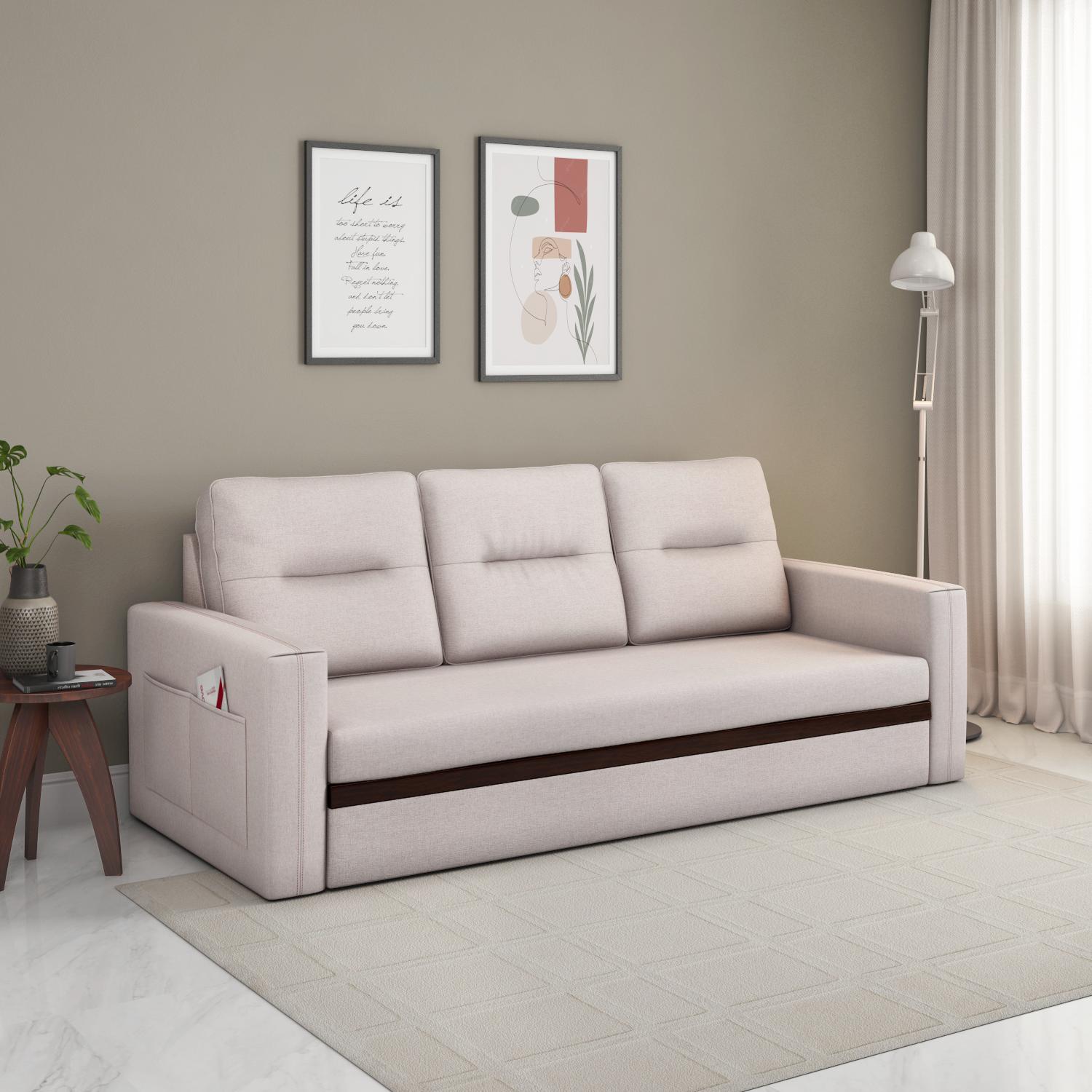 Boxton Fabric 3 Seater Sofa Cum Bed With Side Pockets (Light Brown)