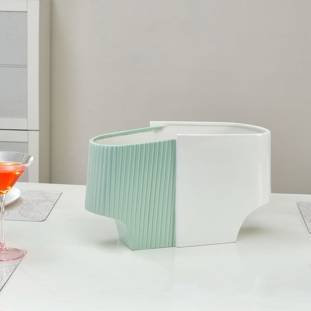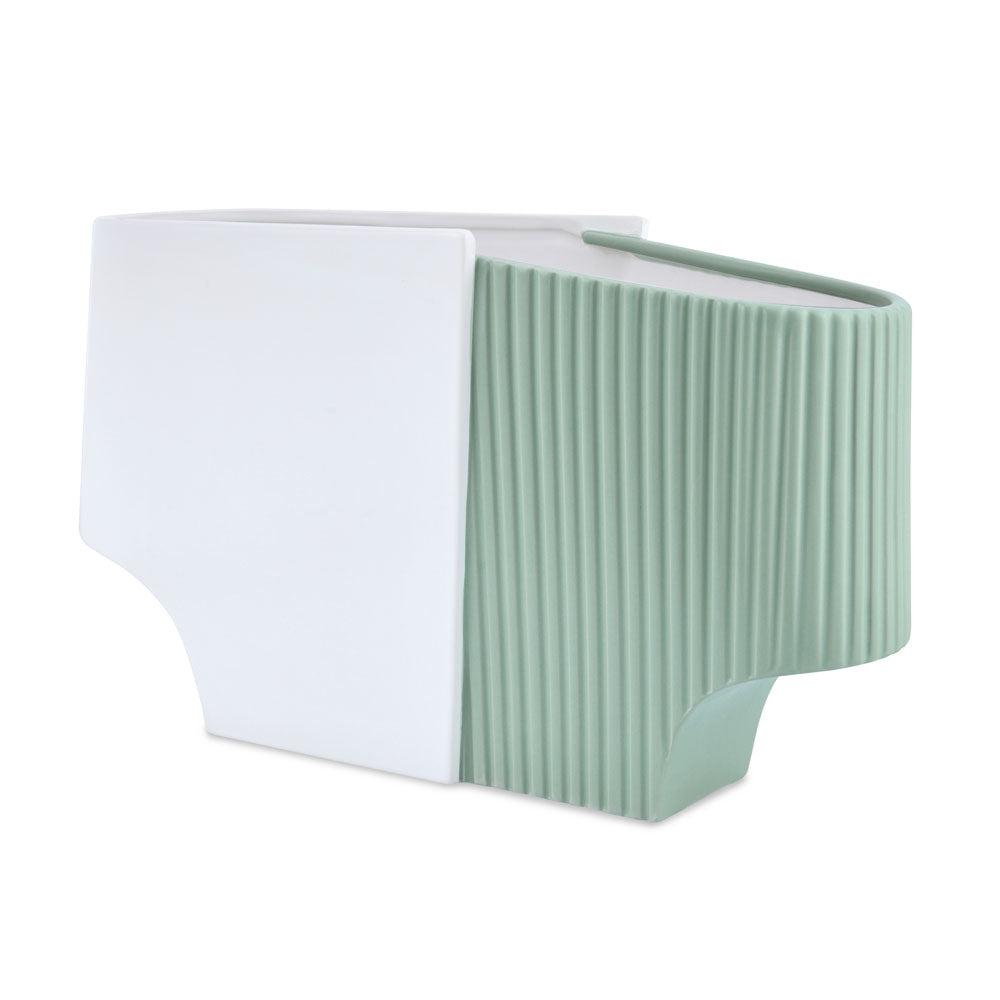 Decorative Fluted Dual Color Design Dolomite Vase (Green & White)
