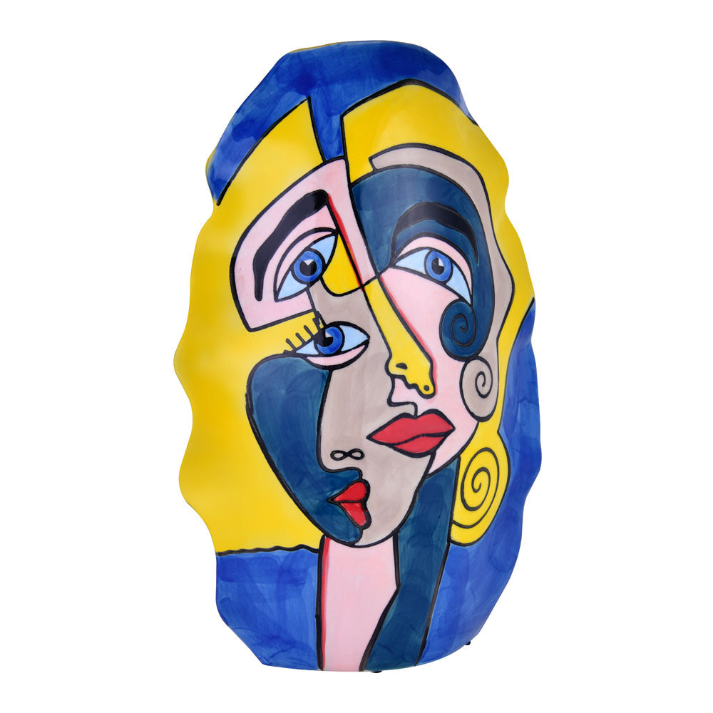 Decorative Wavy Oval Hand Painted Ceramic Vase (Multicolor)