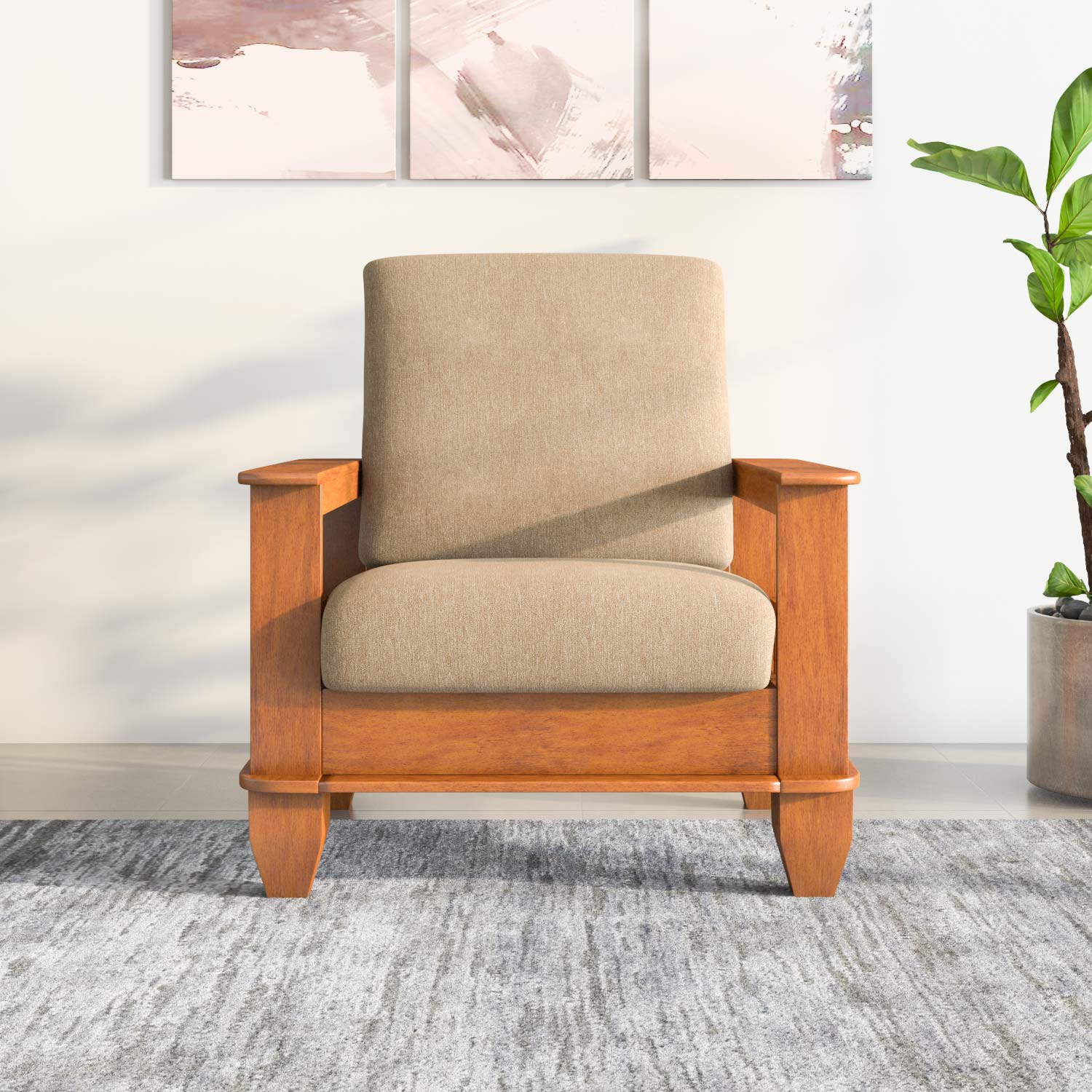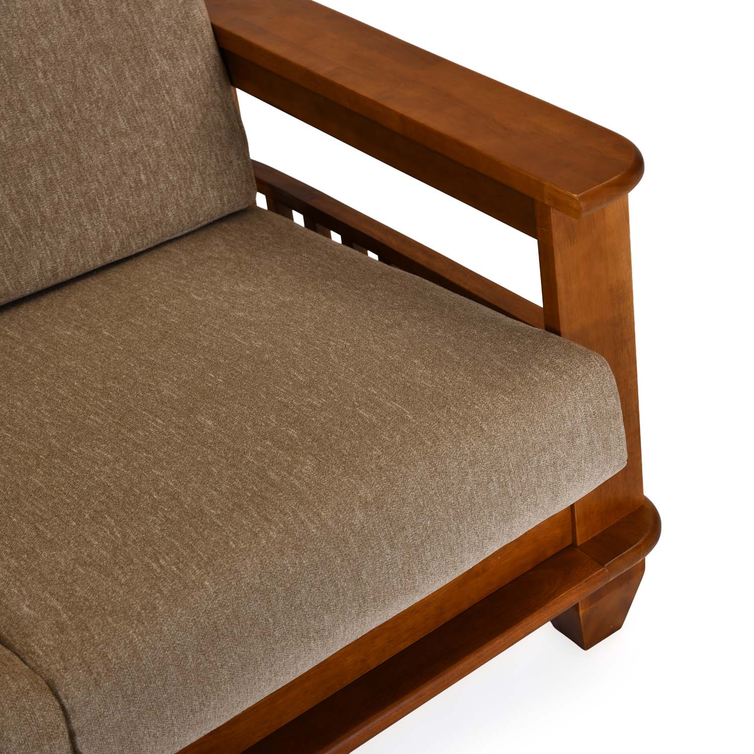 Part traditional, part modern, the Elena Nios three seater sofa charms with its balanced style. Crafted with rubber wood, foam and fabric upholstery, the sofa has the right balance of design elements with a functional approach. Simple armrests are complemented with linear designs on the side, cushioned seating and a slanted cushioned backrest for extra comfort. Whether you want to place it by the coffee table to enjoy reading or in the living room in front of the television, it plays its role with easy and perfection. All you need to do is welcome it with a little space for it in your home.