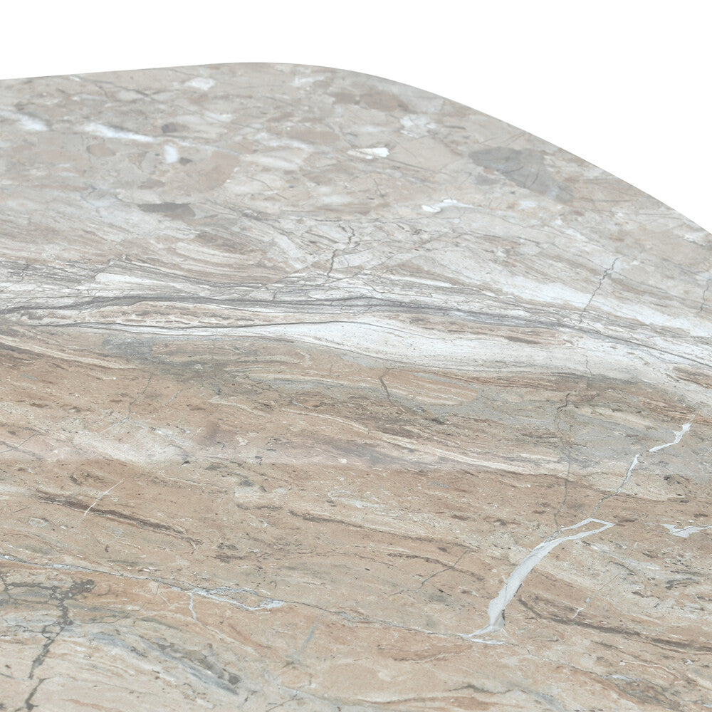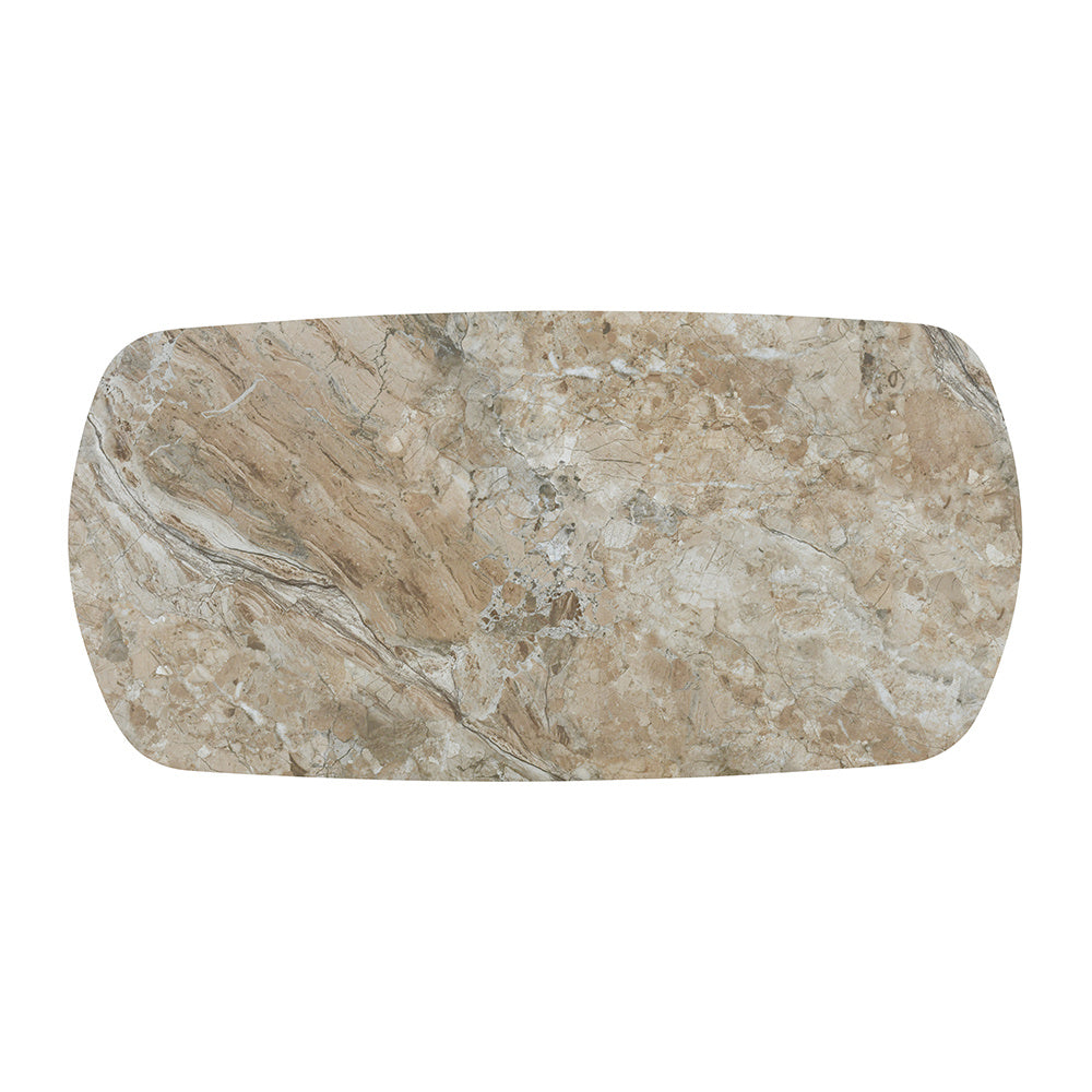 - Elegant marble effect brown ceramic top supported by engineered wood, creating a sophisticated look