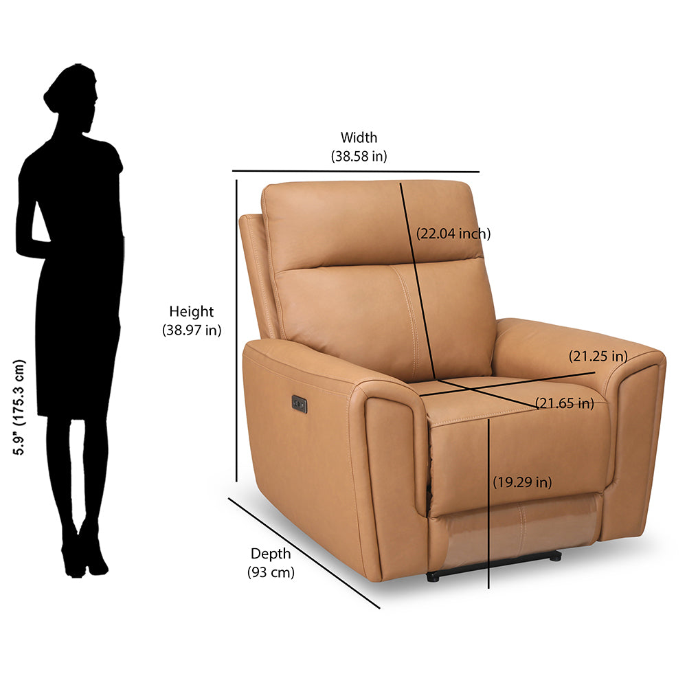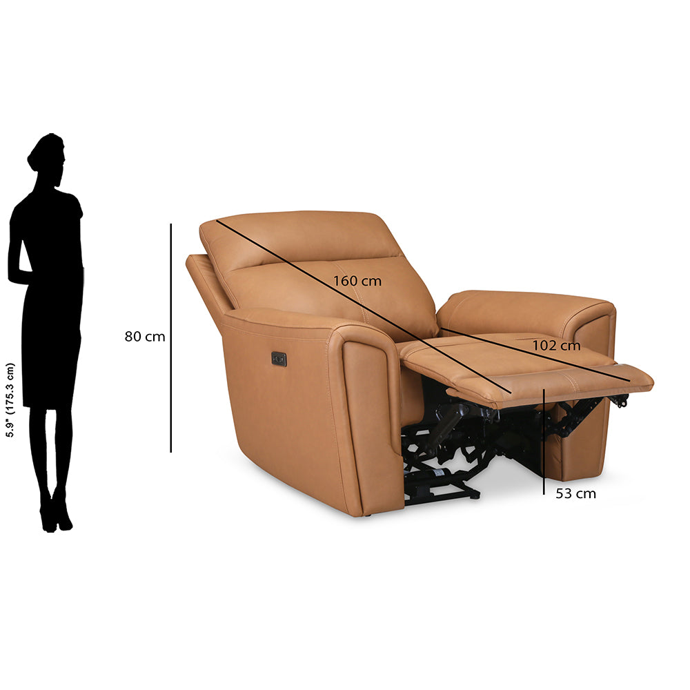 Venosa 1 Seater Electric Recliner Sofa (Tan)